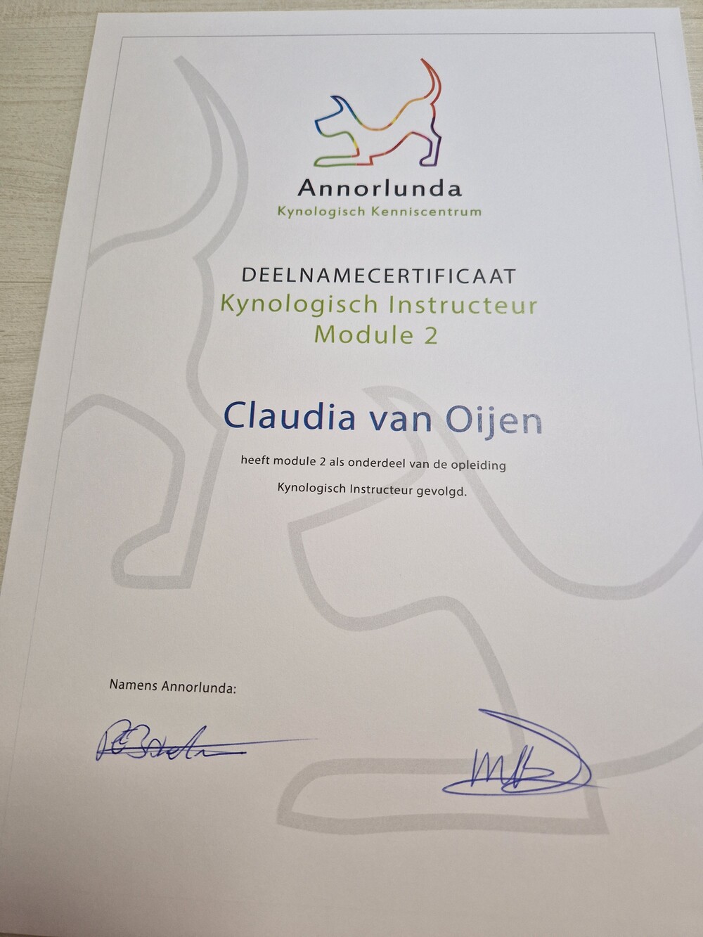 Kynologie module 1A Gedrag en leren: 2 december 2024: geslaagd met certificaat