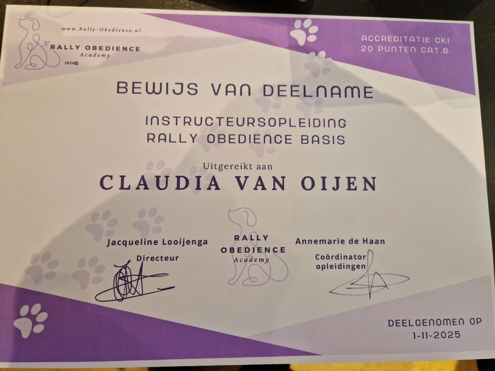 Kynologie module 1B Gedrag en leren: 4 april 2025: geslaagd met certificaat