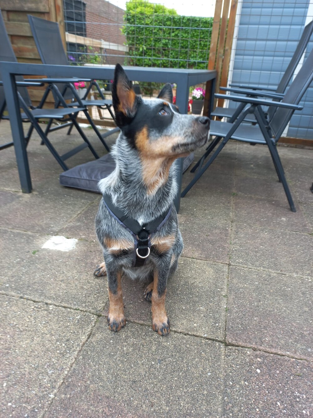 Ava Kira: Tuig gebruiken we in de fietskar en op plekken waar ze niet los kan of niet mag. Prettige bijkomstigheid is dat ze dan ook niet trekt. En verder gewoon klik halsband, die is haast te klein, nieuw ligt klaar.