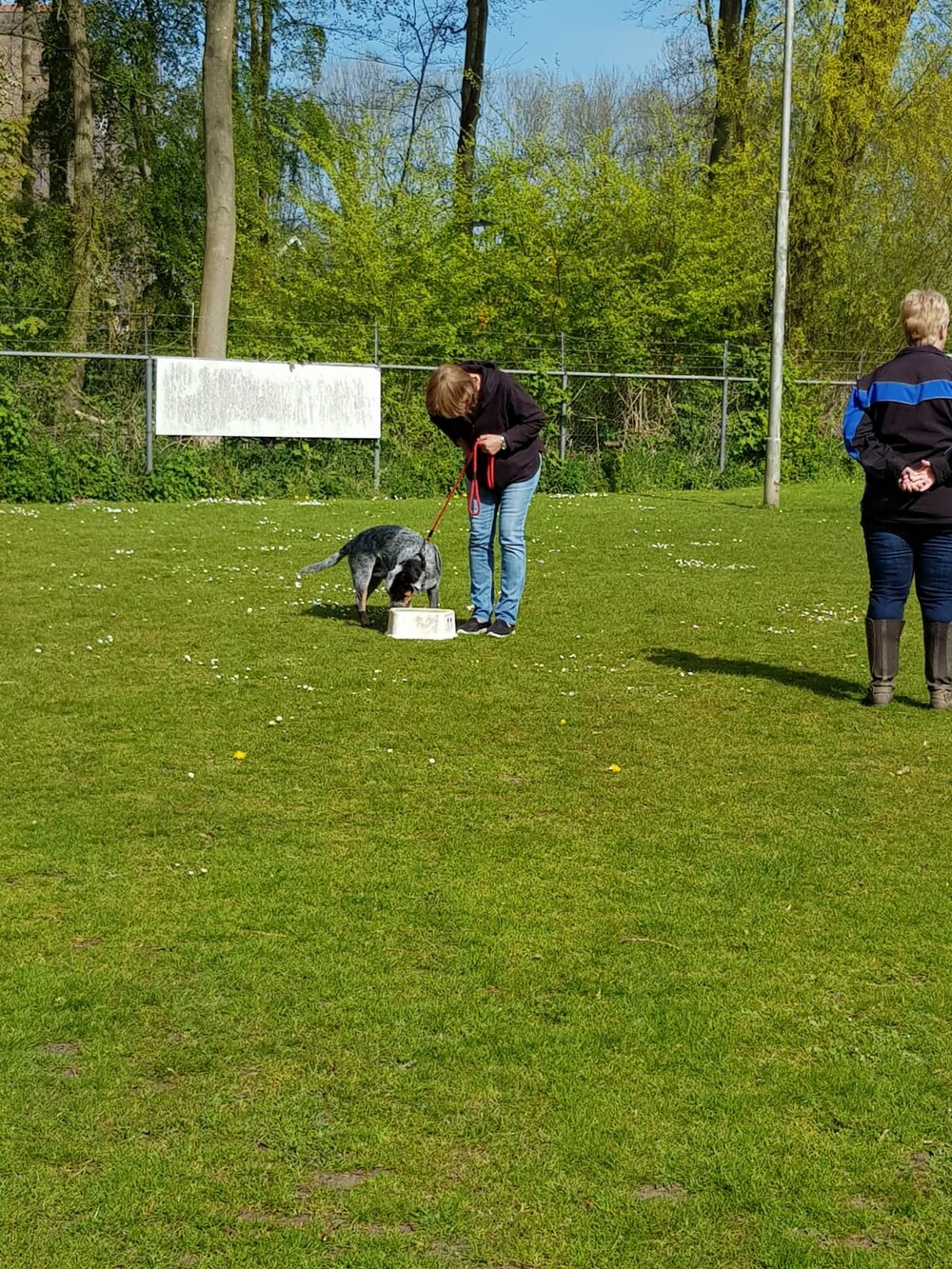 Volgen tussen andere honden door, prima down blijven en weglopen.