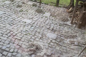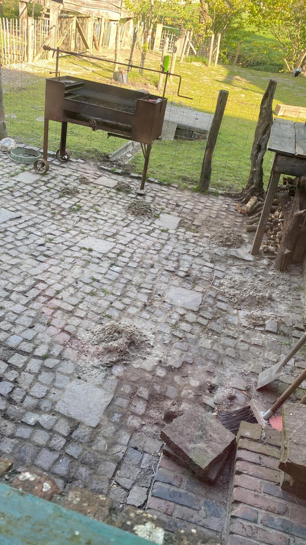 Terras omploegen door de mollen, na 4 keer terras overnieuw te moeten leggen, zijn we er klaar ermee.