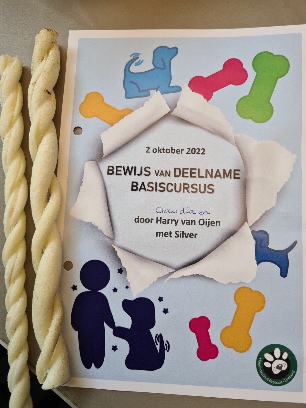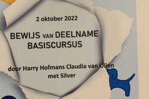 Deze vervolg curcus is nu afgerond met certificaat en we kunnen doorstromen naar gehoorzaamheid 1.
