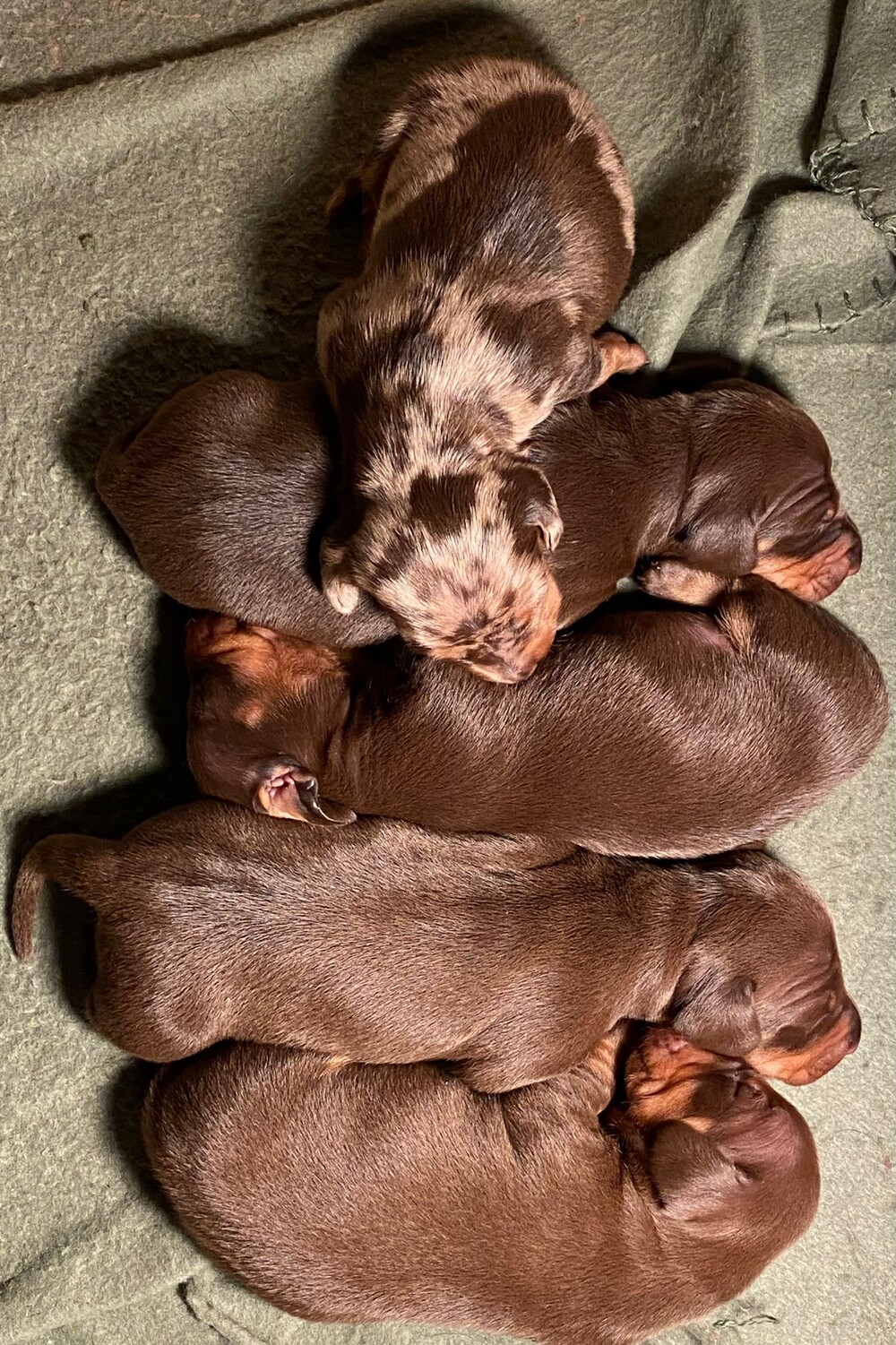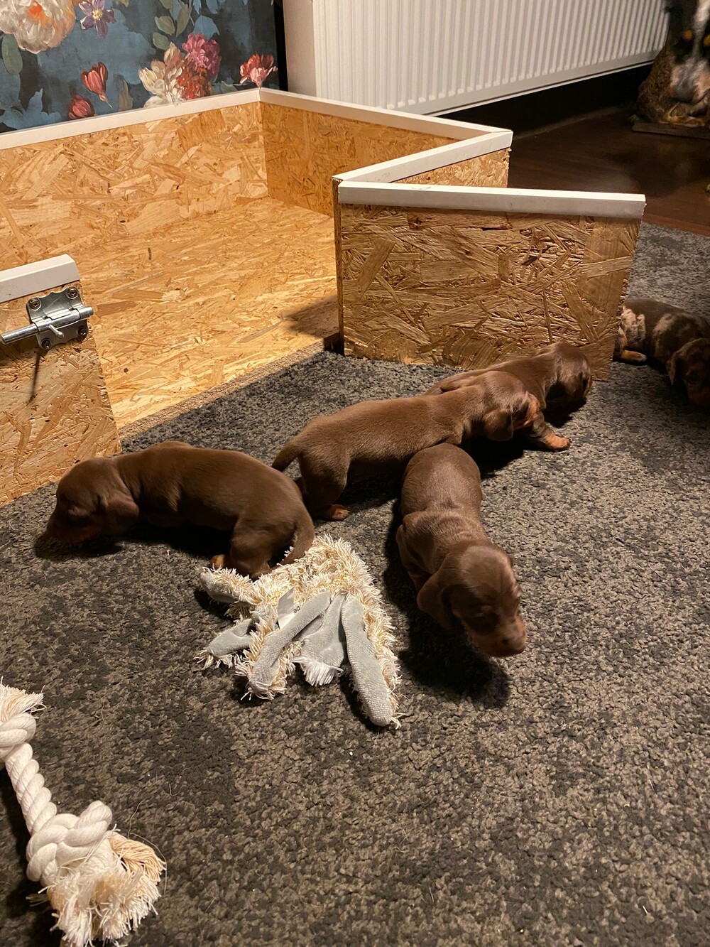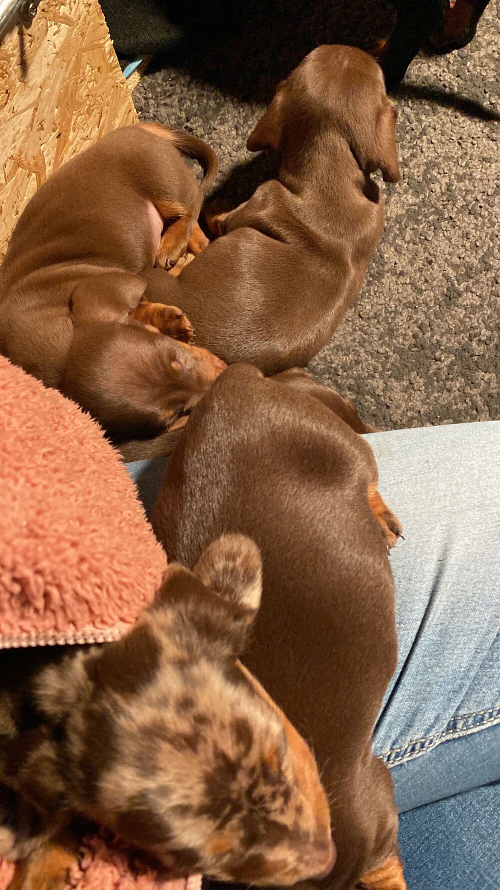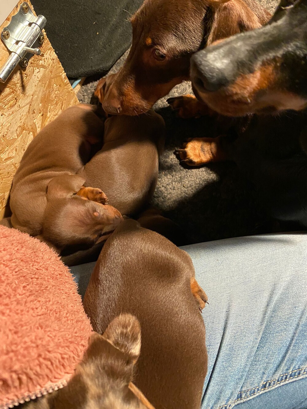De pups doen het goed, slapen,eten, karakter vorming merk je wel.