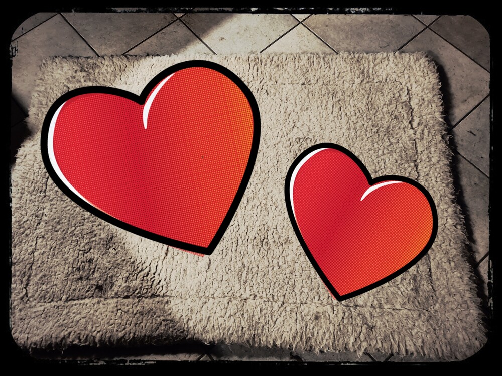 Deze zware kleed, kan best in de keuken liggen, slepen ze heus niet door het luikje naar buiten. Ligt lekker, is van natuurlijk materiaal...
