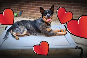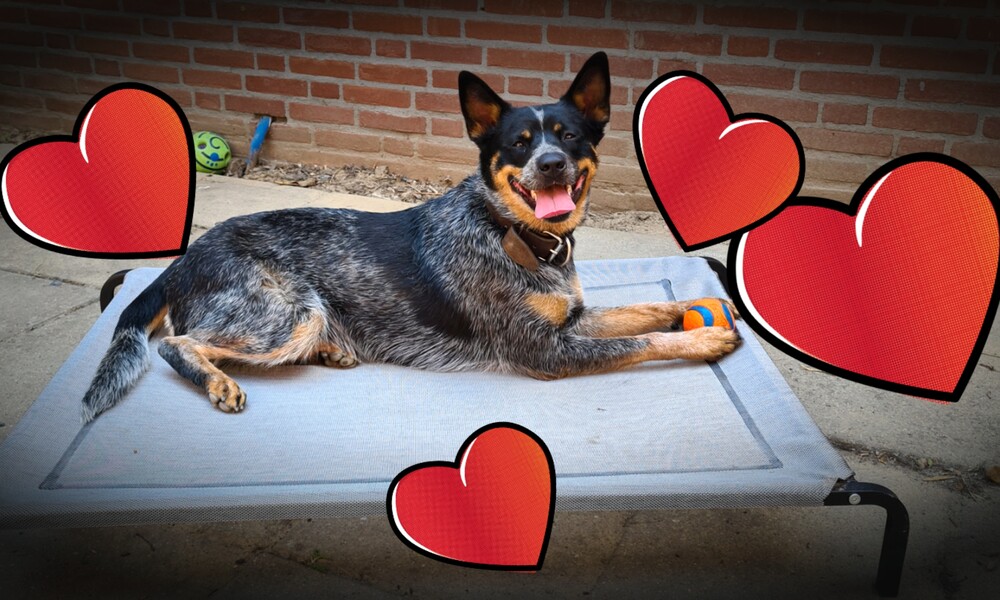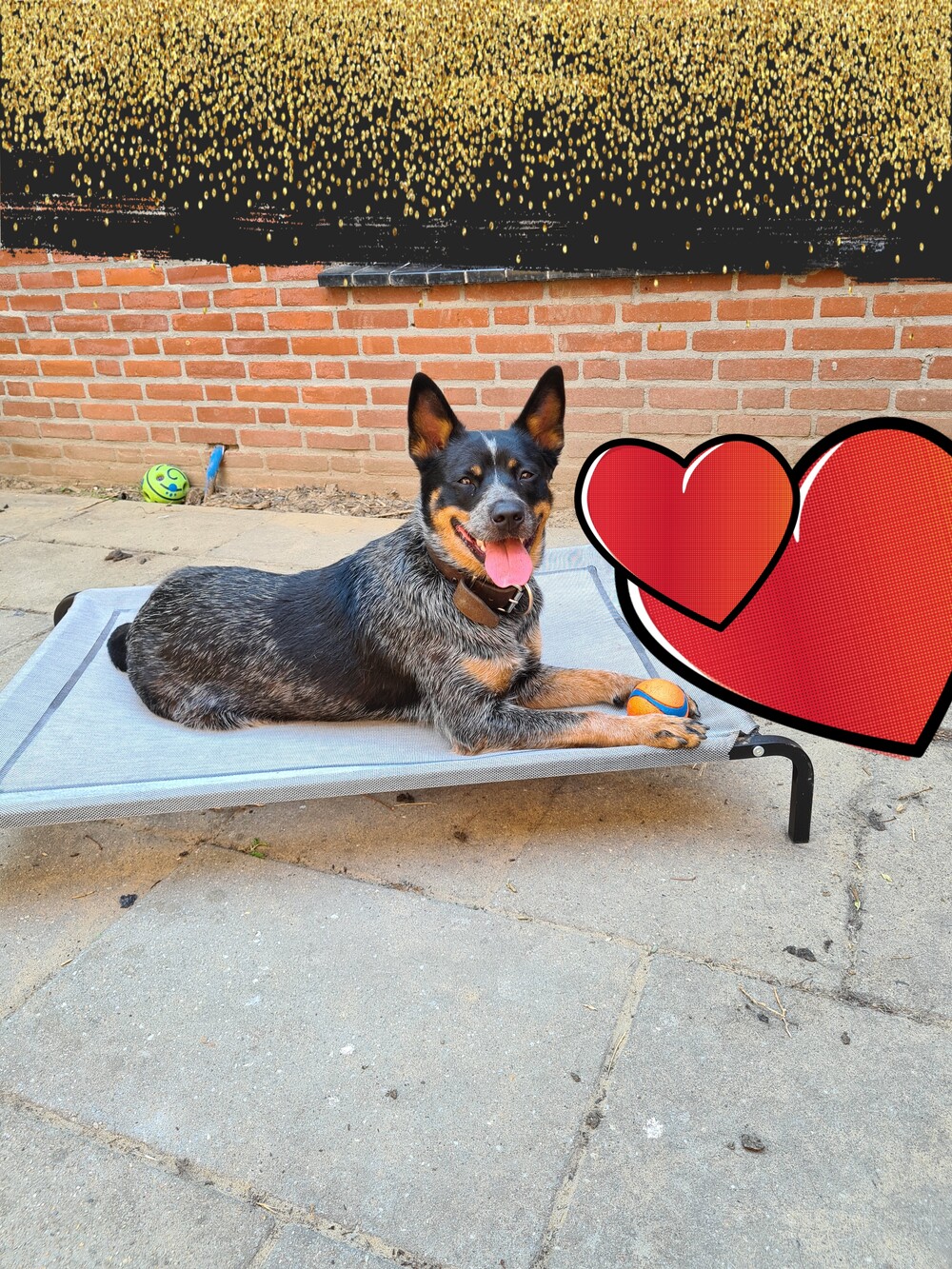 Lekker op het stretch bedje, met bal en n hoop trainers van baasje.