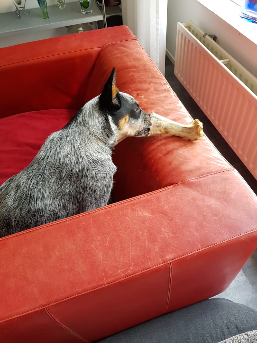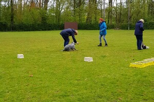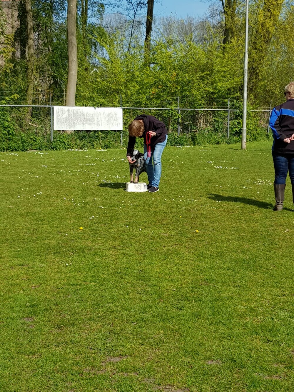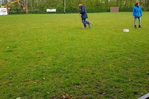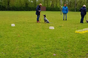 5 mei: Het was een zware training, af en toe buitjes, die handler let goed op en ik kon nergens onderuit komen! Ik mag nog twee keer en dan naar de gevorderde curcus: EG curcus Elementaire gehoorzaamheid, dat is een hele mond vol! Hoeveel lessen, dat weet ik nog niet, morgen naar de schapen! - Thuis na de training: mijn reukvermogen testen