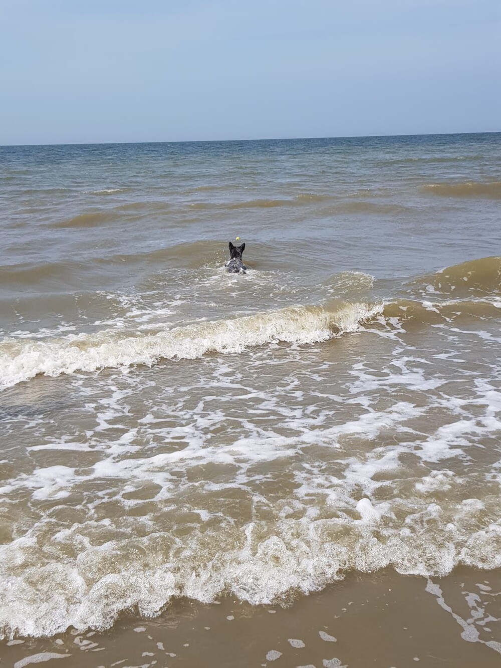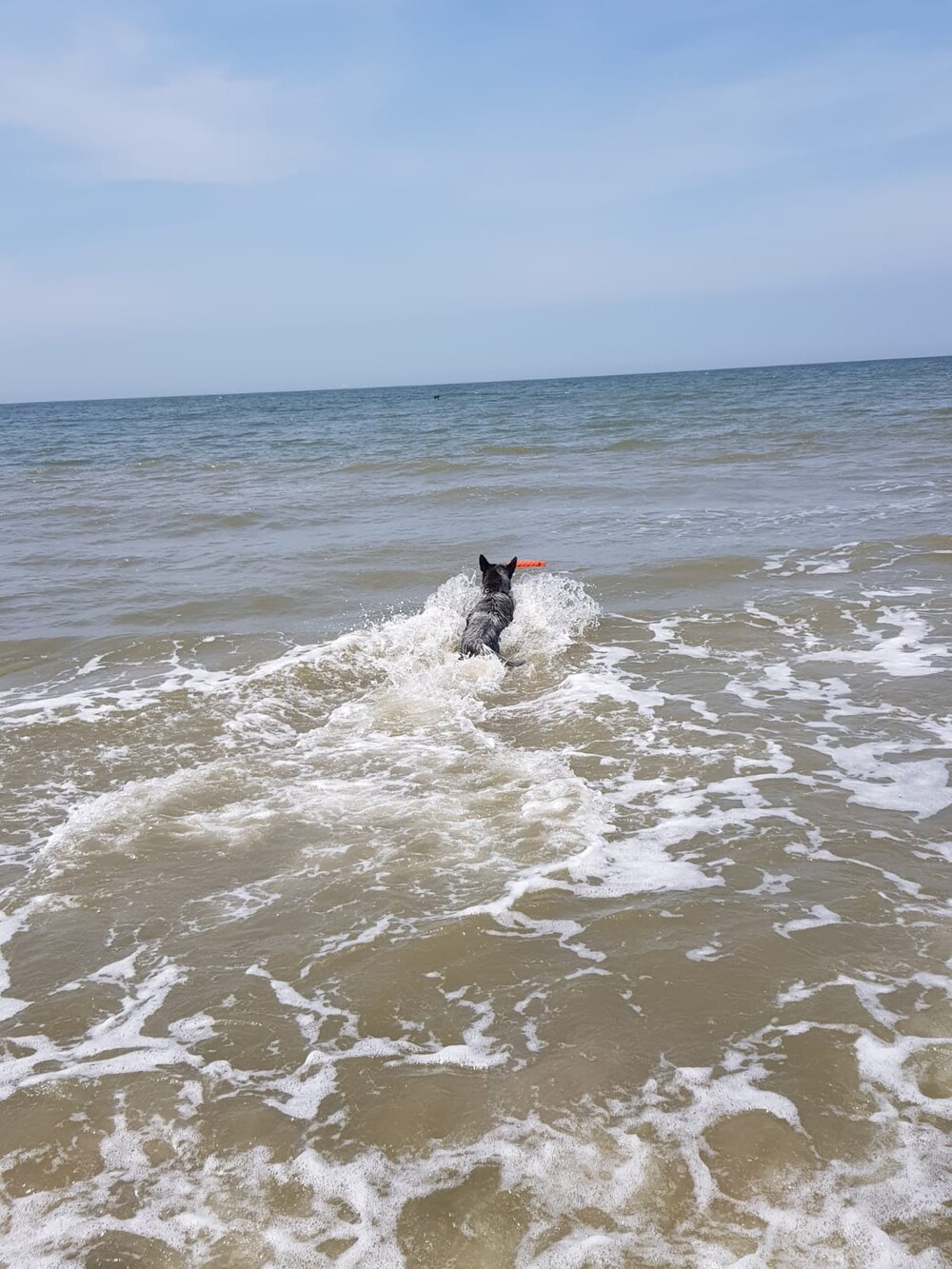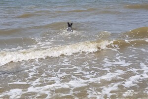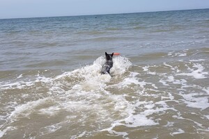 5 juni: Ik ben een Australische cattle dog, geen zee te hoog, oftewel geen golf te hoog. Ik ben een echte bikkel.