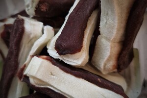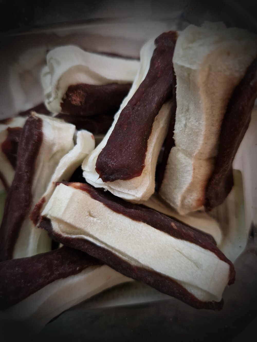 - ik kreeg gratis snacks bij de lange lijn erbij: kauwbotjes, voelen erg hard aan.