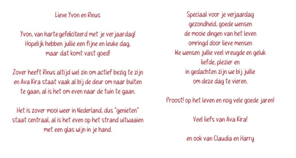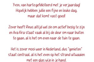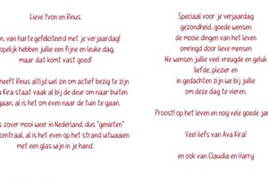 Ava Kira: Yvon is vandaag jarig! We wensen Yvon een leuke verjaardag toe! - Liefs Claudia en Harry