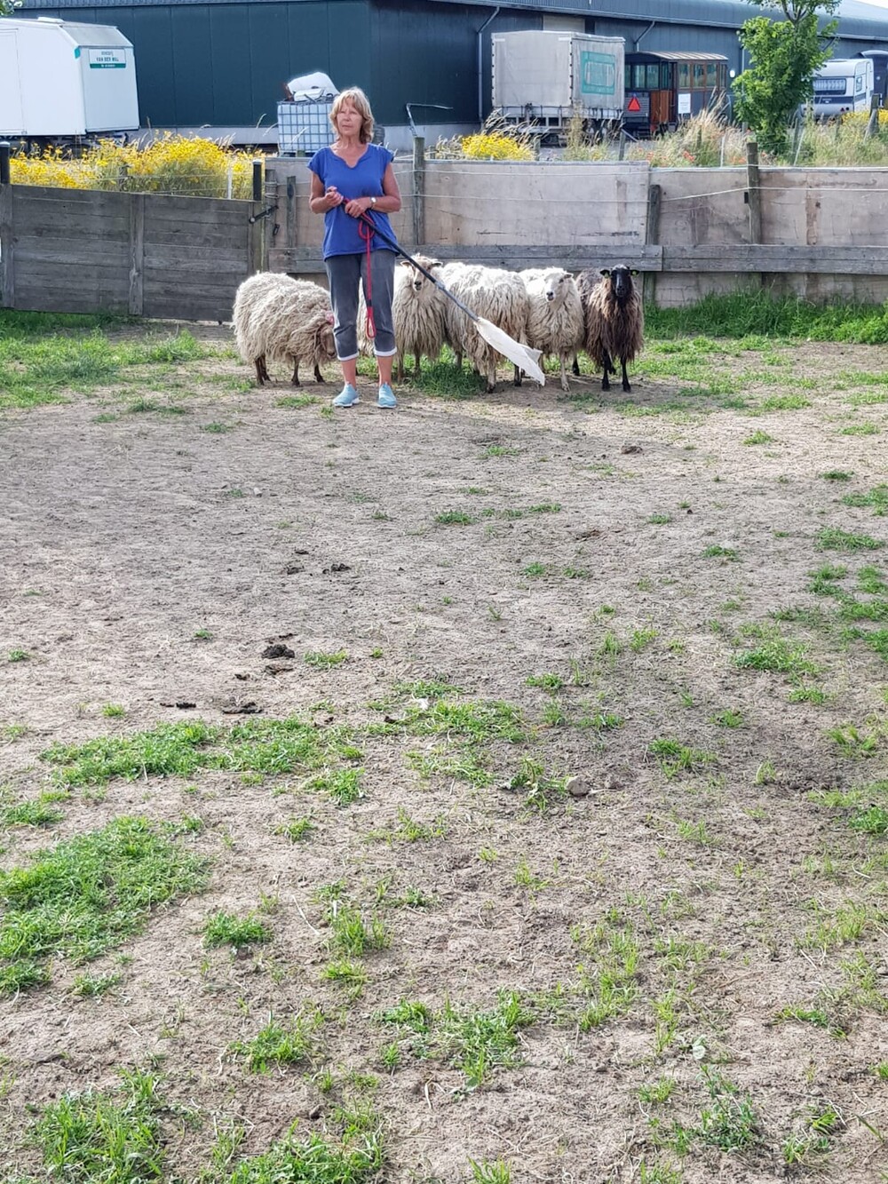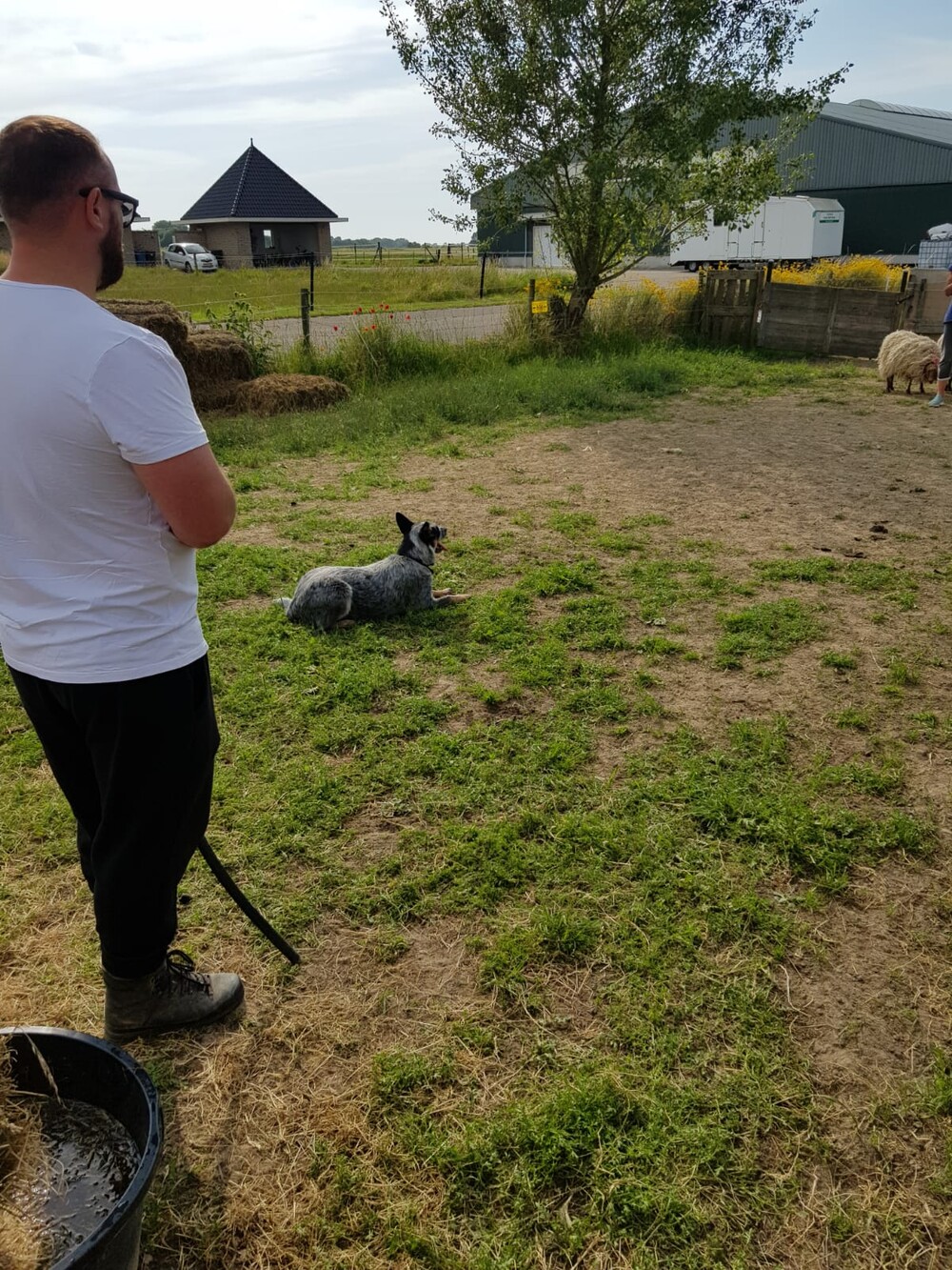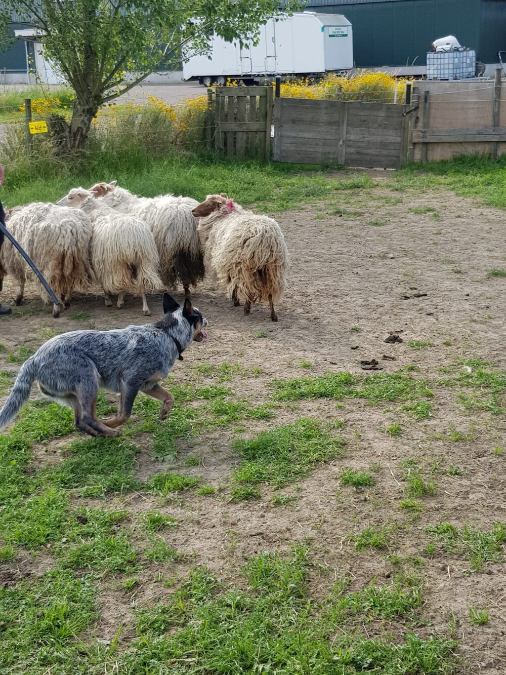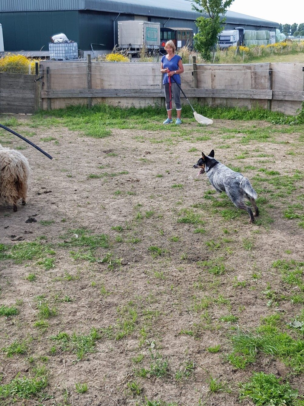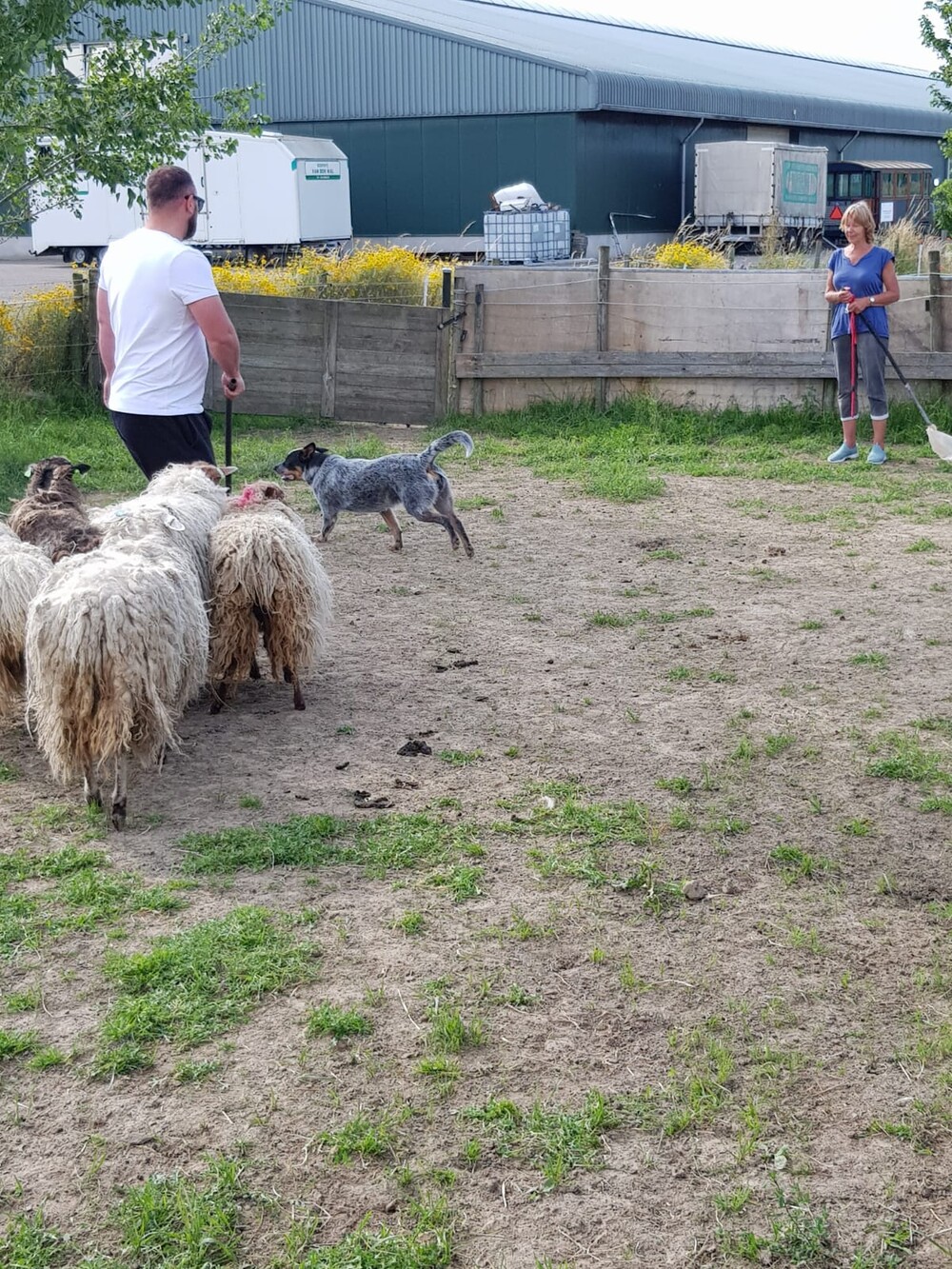 We waren bij de schapen. Yvon heeft dit al een paar keer gedaan, elke keer wat meer, maar gaat goed. Handler is dik tevreden en vind Ava Kira elke keer beter, maar ook sterker en mooier worden.
