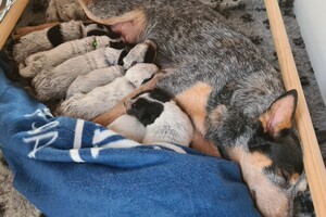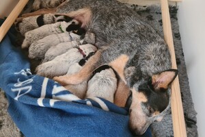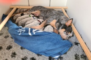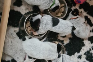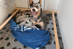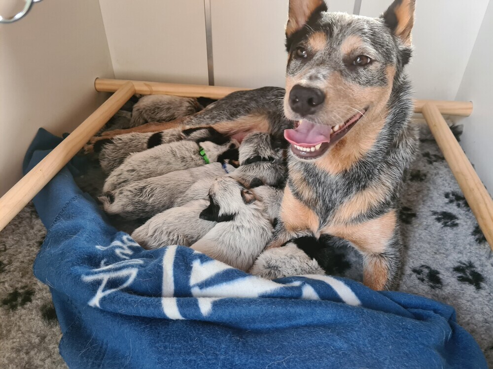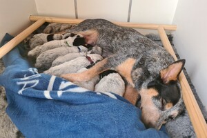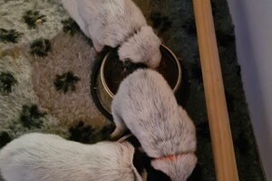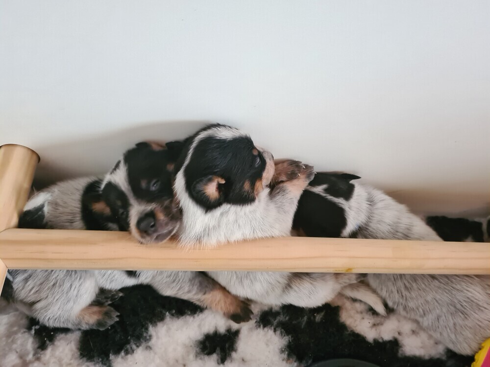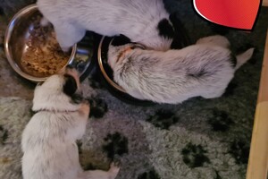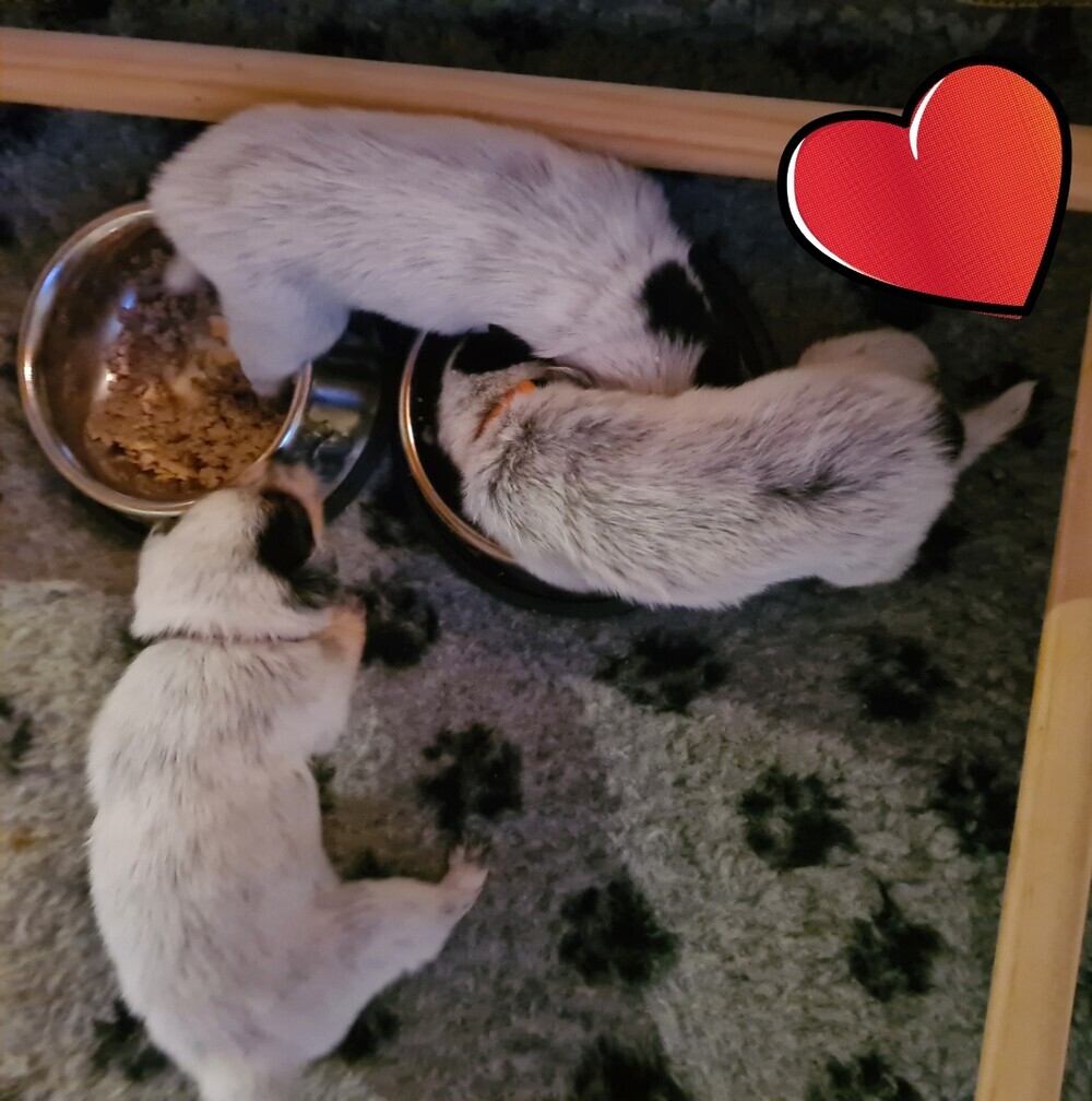 Vandaag, kregen ze in de werpkist vlees te eten, sommige dachten: nou,die pap was dus best lekker...dus sommige pups hebben dat zo in de gaten, dat eten dus best lekker is. Eens wat anders dan een wormentablet, zou ik zeggen.