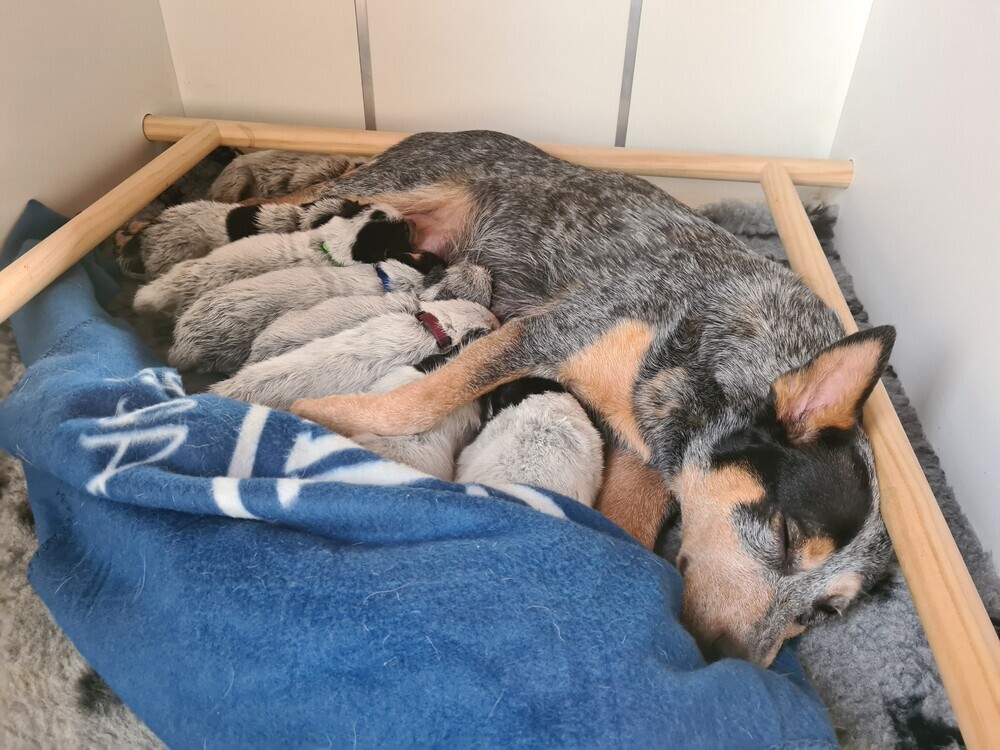 Wat kleine pups vooral nodig hebben om goed te groeien is veel rust! We gaan richting de derde week, dus de puppy's krijgen vast voedsel, we zijn daar alvast vandaag mee begonnen: eerst begonnen we met pap. Pap hebben ze gegeten buiten de werpkist: zodat ze lekker aan de pap konden wennen, daarna een fris bad: je had die "melk snuitjes" moeten zien, zo lief, maar vooral "plakkerig" want het zelf eten, gaat natuurlijk wel op zijn eigen beloop: pootje in de bak, pootje naast de bak, even zelf nog erin..oftewel: pap zat natuurlijk overal...maar dat is niet erg: pups mogen hier lekker pups zijn, maar daarna is het wel even fris een badje, gewoon water zonder shampoo, want dat spoelen we zo eraf. Daarna weer lekker warm terug bij mama, extra fleece deken erom heen en een Moederhond, die ze schoon en droog likt en een Hondenmoeder (ikzelf dus) die de puppy's nog even lekker droog maakt met een handdoek en de warmtelamp boven de werpkist: helpt natuurlijk ook mee.