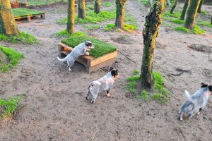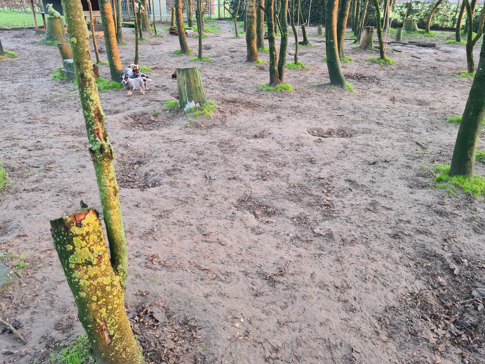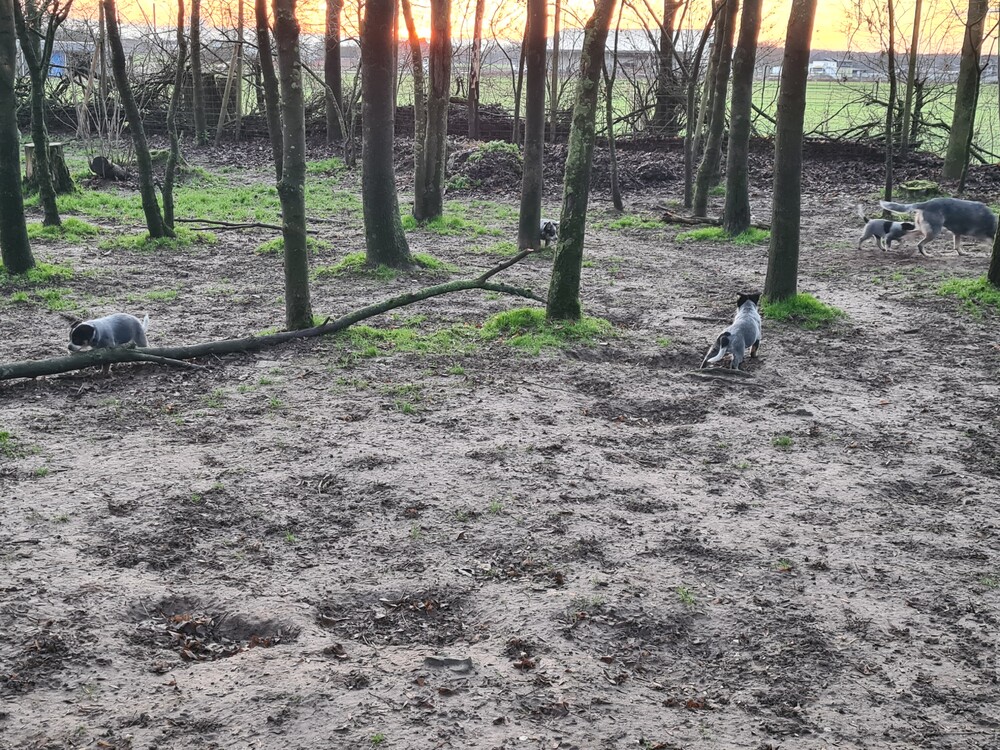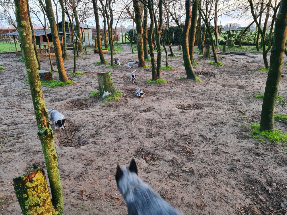 Verder heb je een stuk bos wat omheind is en dus veilig is voor de honden: niemand kan weglopen en verdwalen oftwel gecontroleerd "buiten spelen"