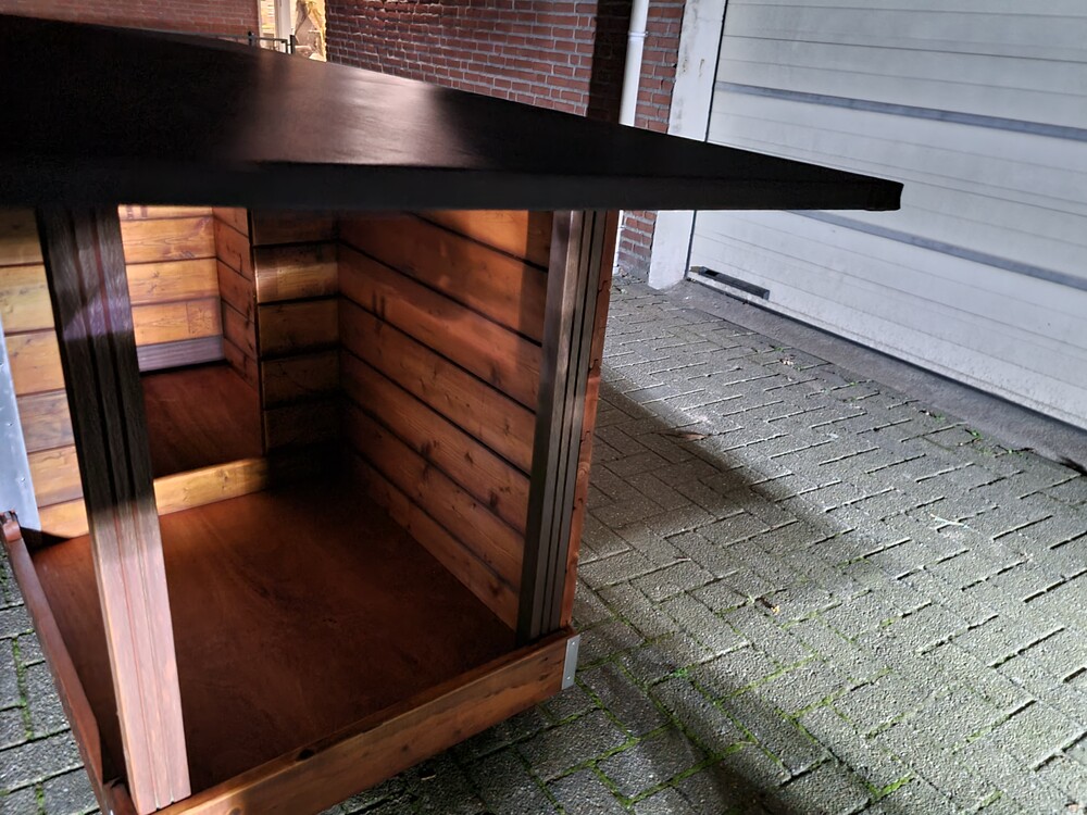 Ik kom thuis van Barneveld Opleiding en het hondenhok is bijna klaar, nog wat details die erbij komen en klaar.