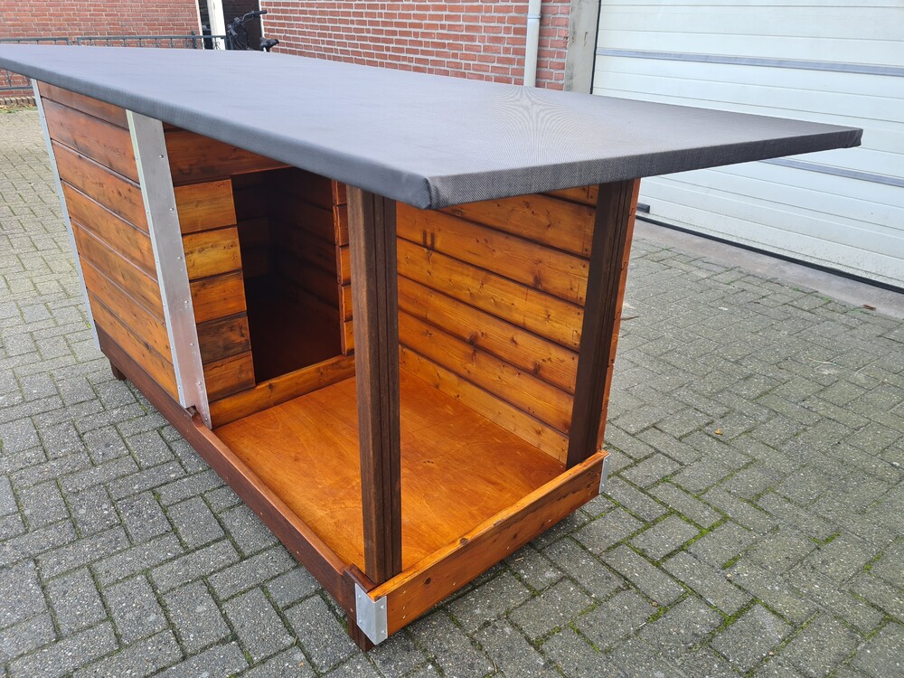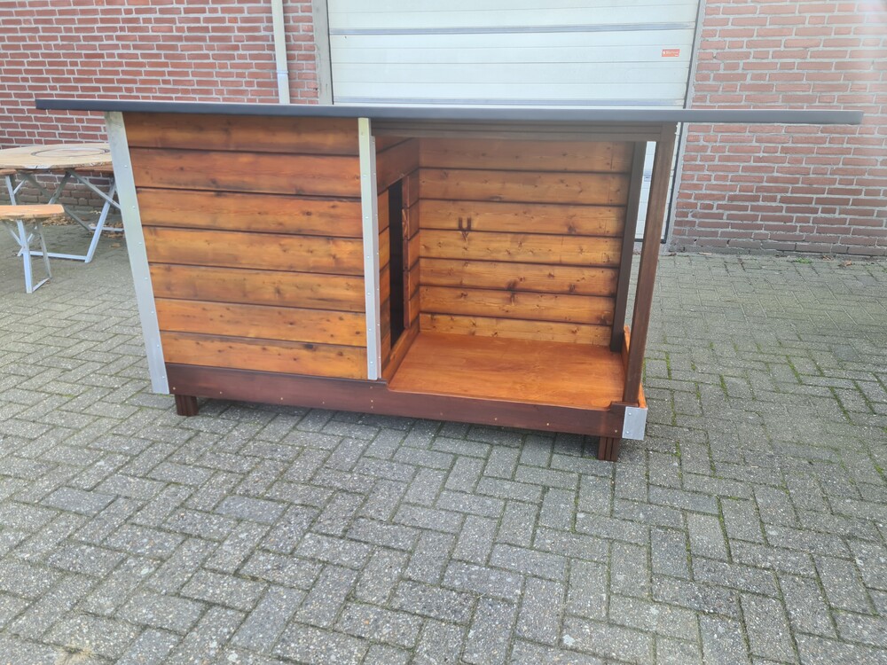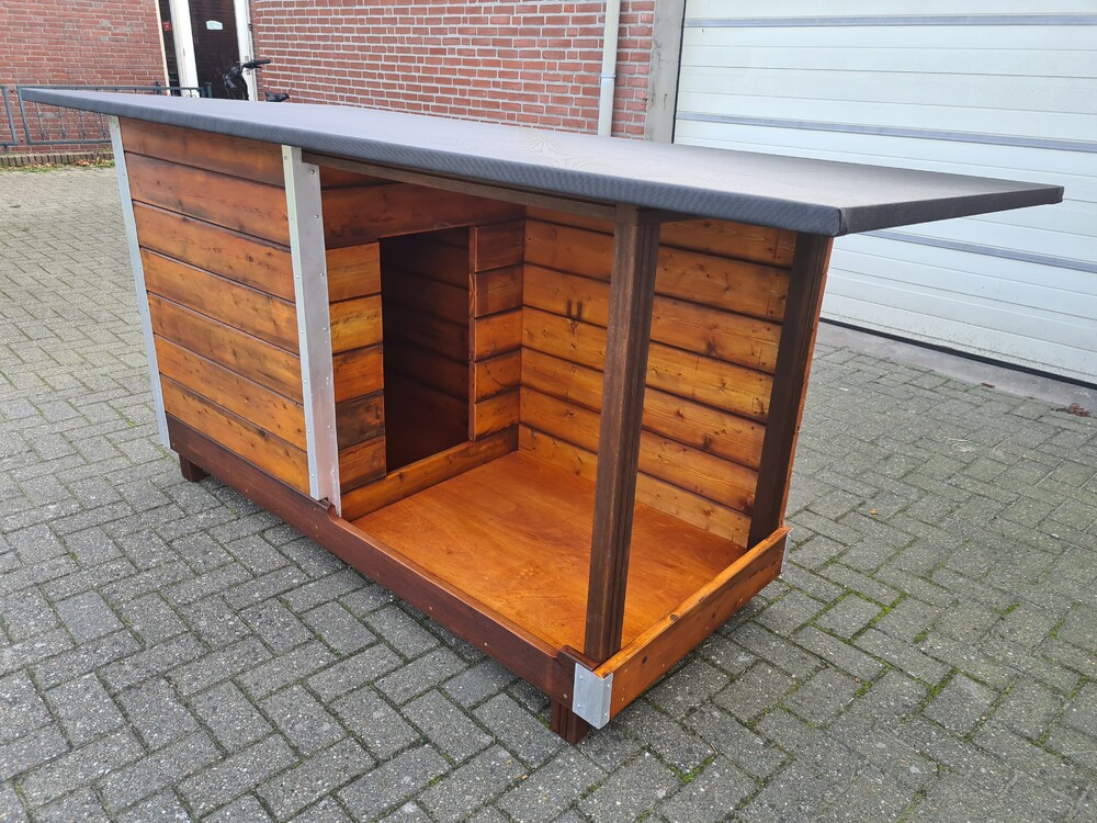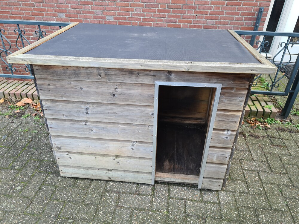 Dan kunnen de honden liggen in een hondenhok: in plaats van een mand: lekker liggen van de grond af.
