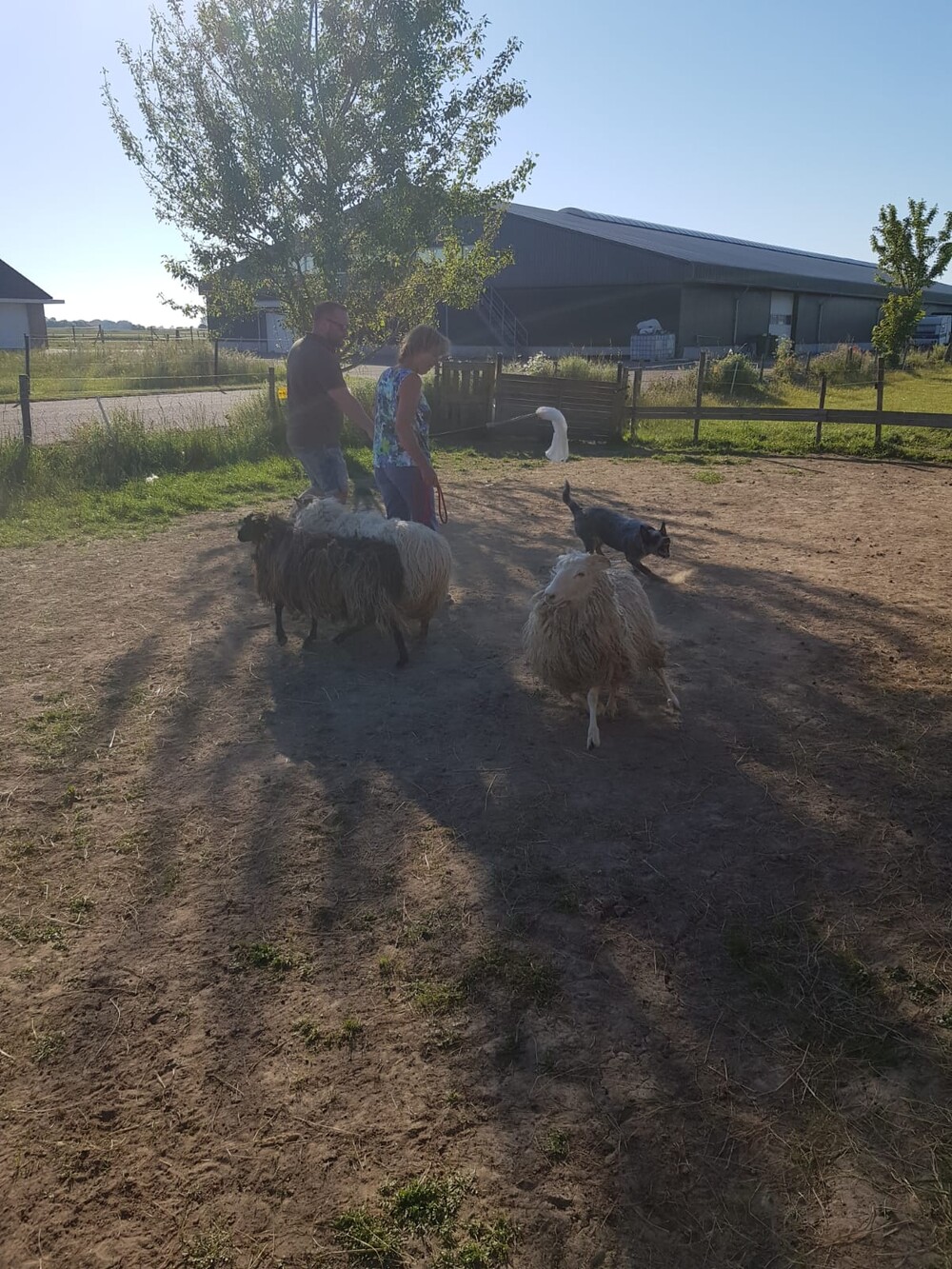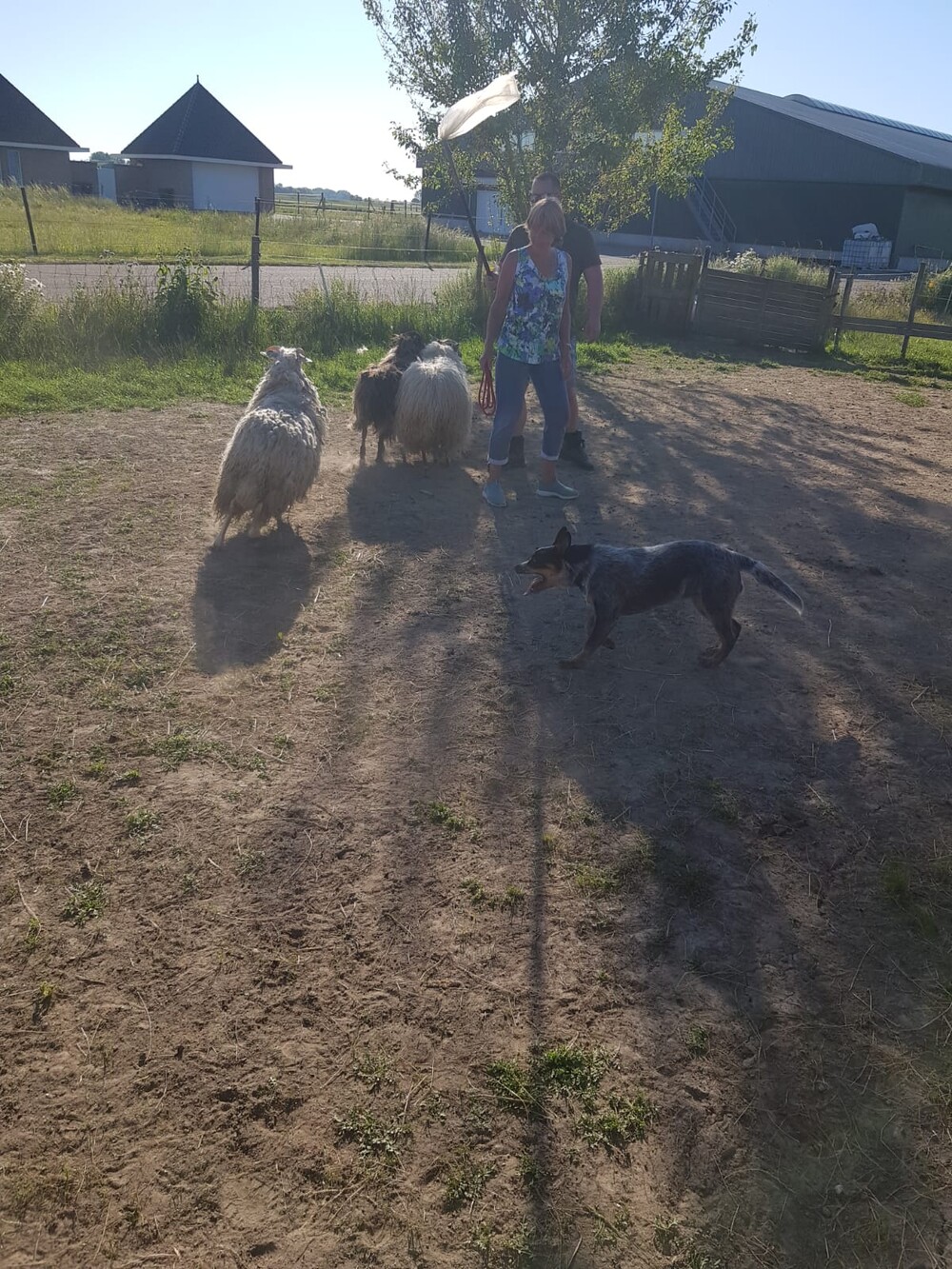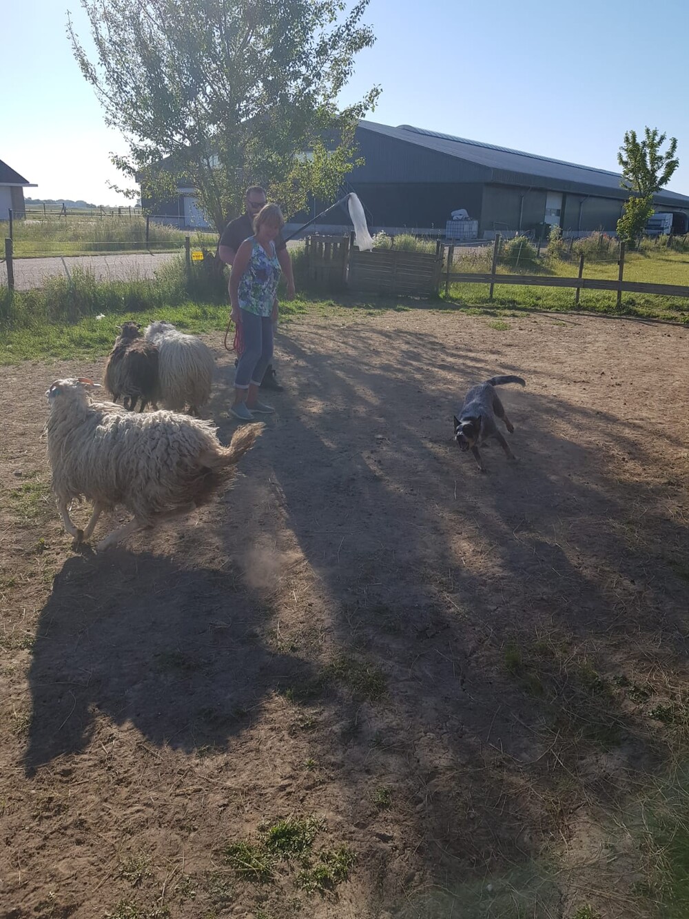 De schapen is niet gemakkelijk en alles is in het Engels. Als we twee jaar samen bezig zijn, dan moet het top zijn. Vanmiddag ging het prima en wordt elke dag leuker. Ik heb vanmiddag fluit geprobeerd, op het strand, dus nog nooit eerder fluit geprobeerd: Ava Kira, staat aan zee, ik zeker 50 meter verder en ik fluit, Ava Kira komt op me af, vlak voor mijn neus zit en lie down, PERFECT!