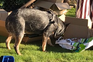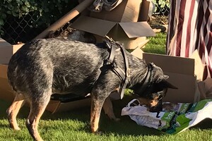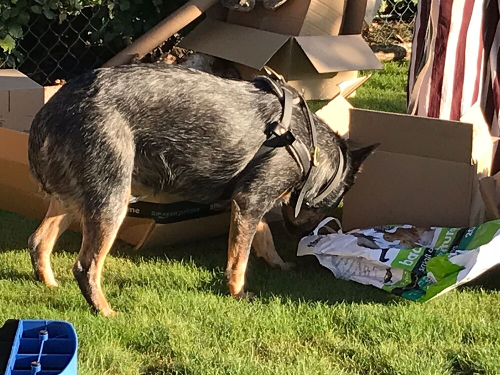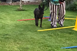 Dit spel: moeten de honden eruit pakken met de bek, yada doet veel met de neus, maar dit deed ze meteen erg goed en pakte ze ook met de bek eruit