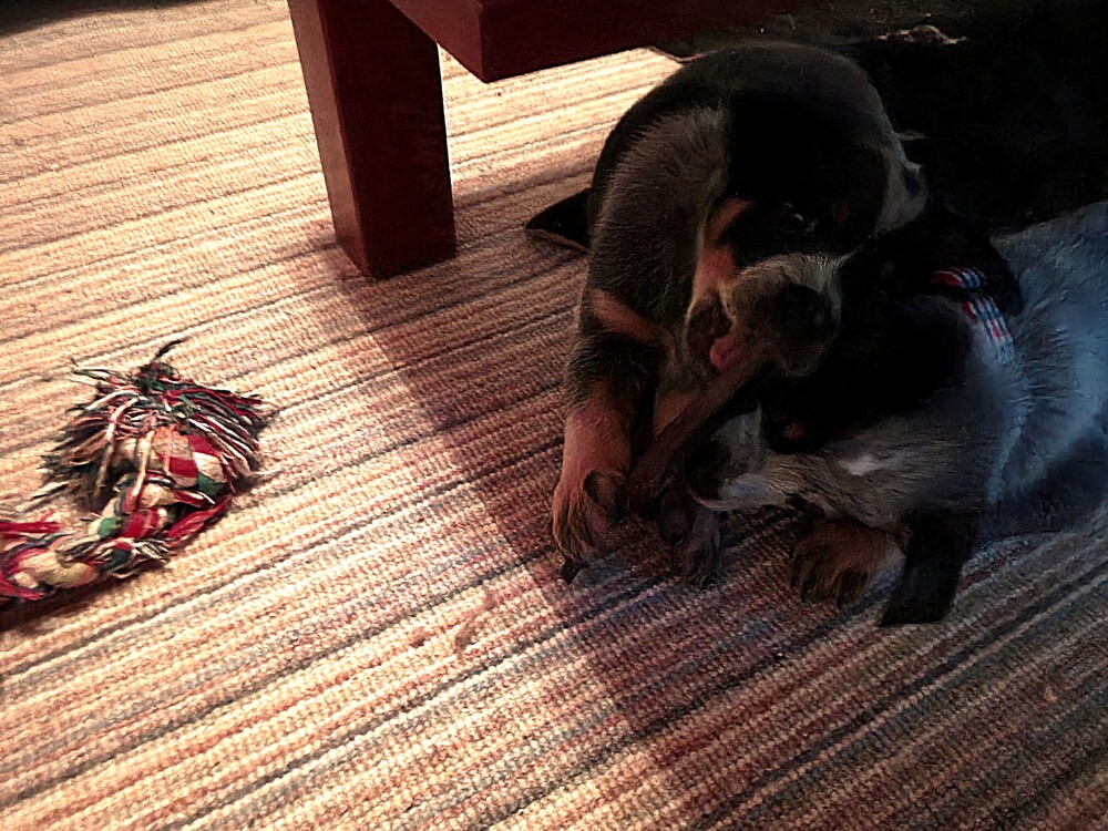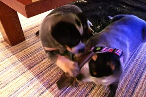 Dakota, laat ik soms in het gras zoeken naar brokjes, snoepjes....