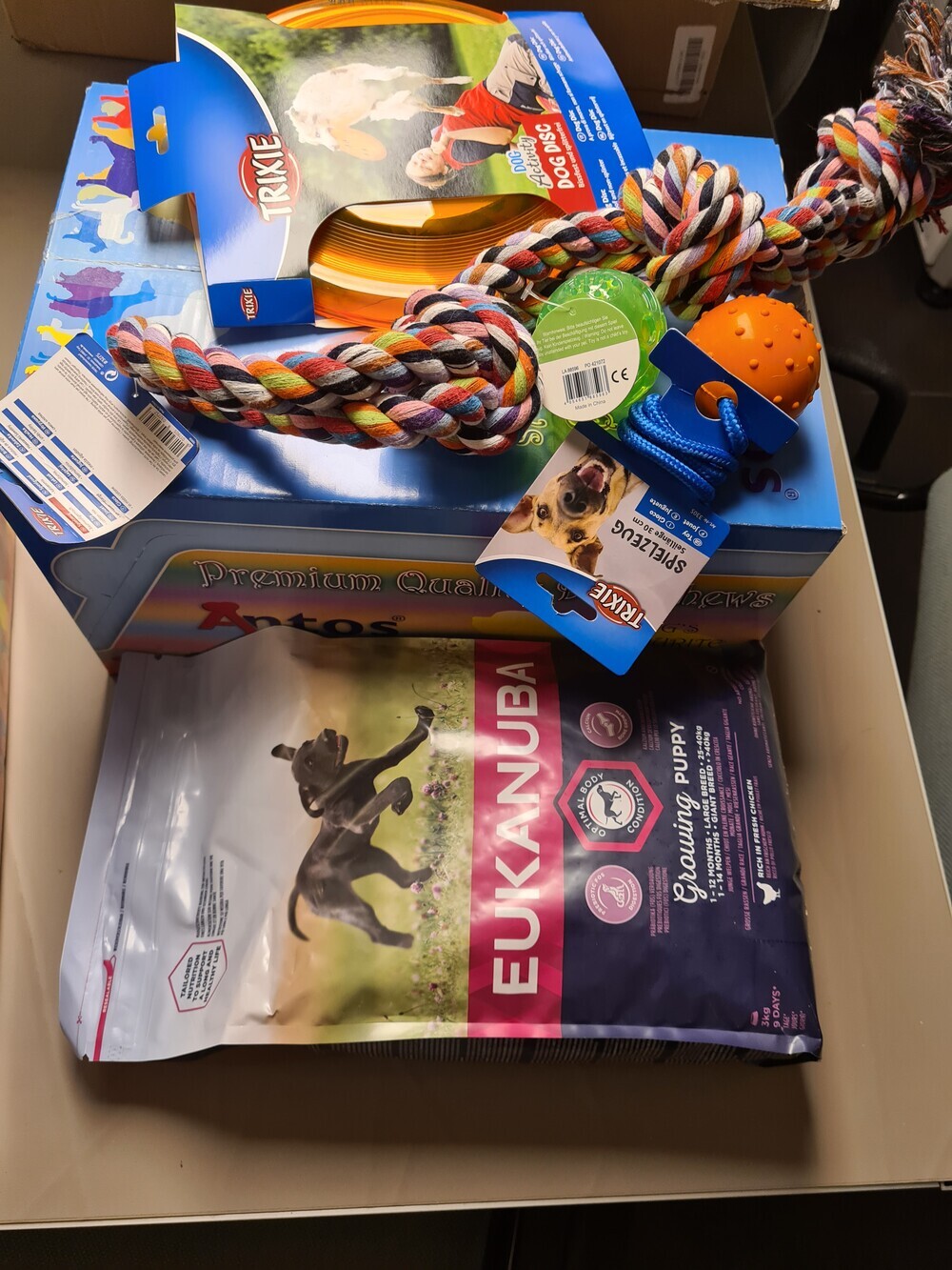 In het puppy pakket: zit een frisbee erbij, omdat het leuk is om te kijken hoe de hond erop reageerd en het is leuk om zelf ermee kennis te maken met het frisbeeën, als nieuwe eigenaar van de hond.