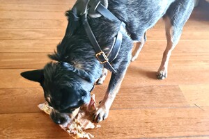 Silver en Yada: zijn druk bezig met botje en de omgeving.