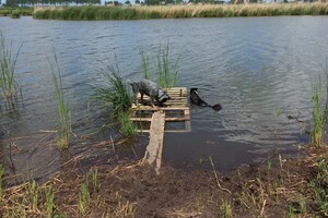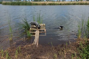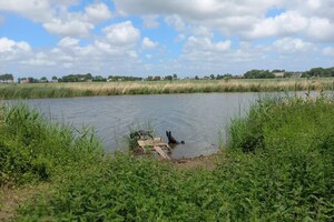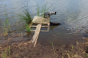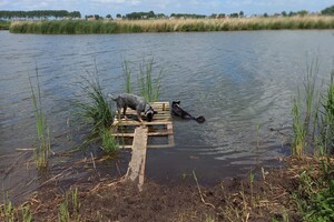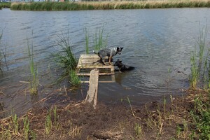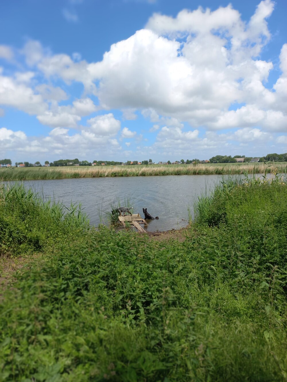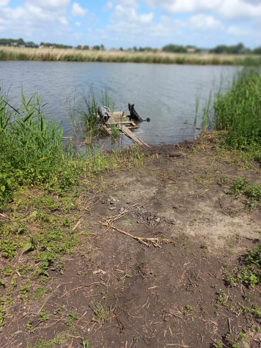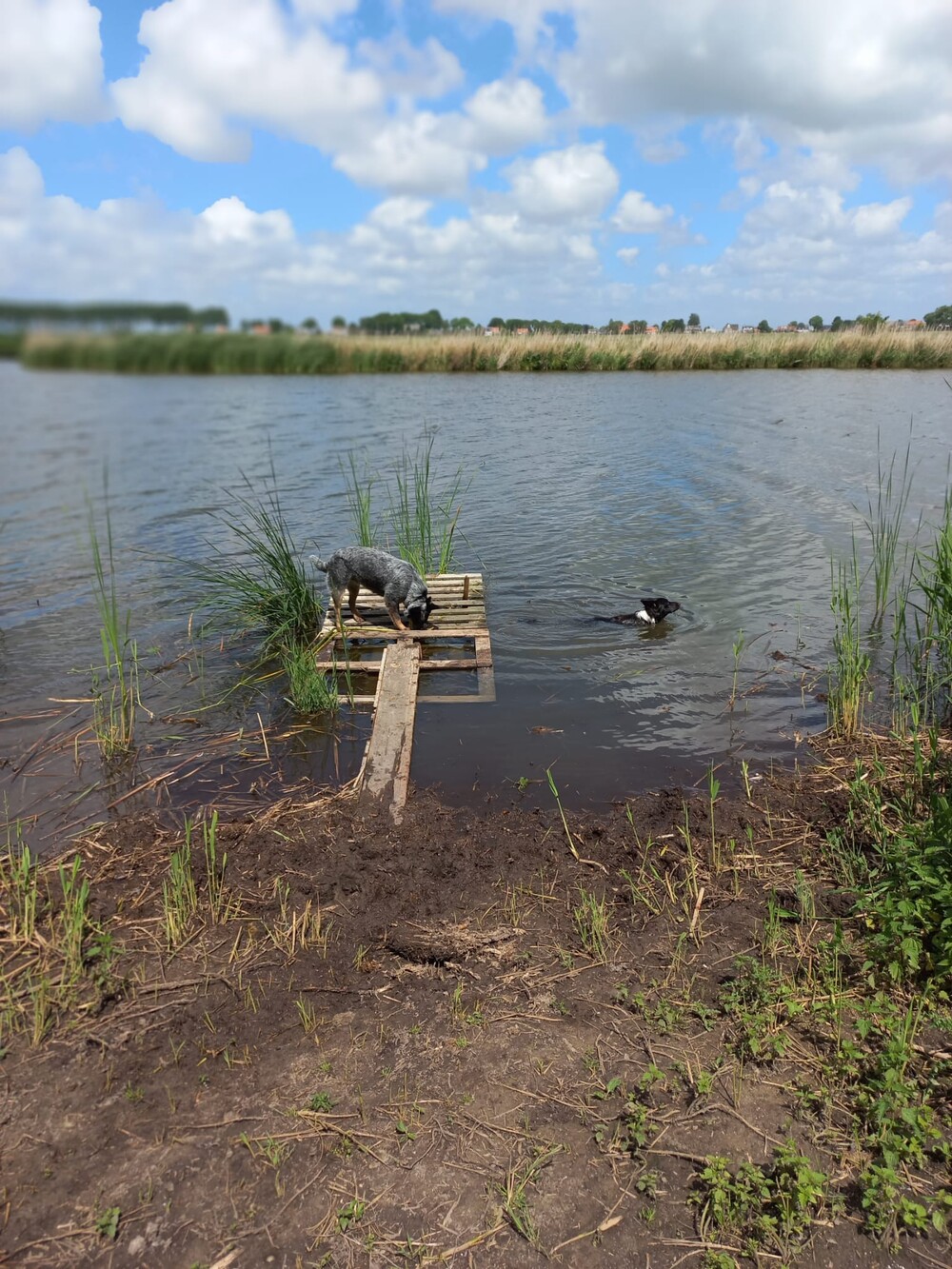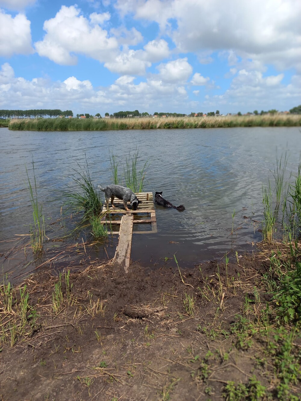 Lekker spelen in het water, opeens kwam er een Shepherd erbij: spelen met zijn drieën