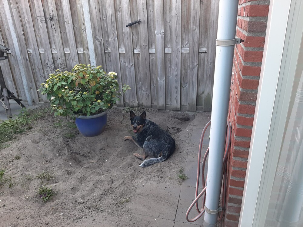 11 juni: Het is warm weer: Soran Bart in de tuin bezig