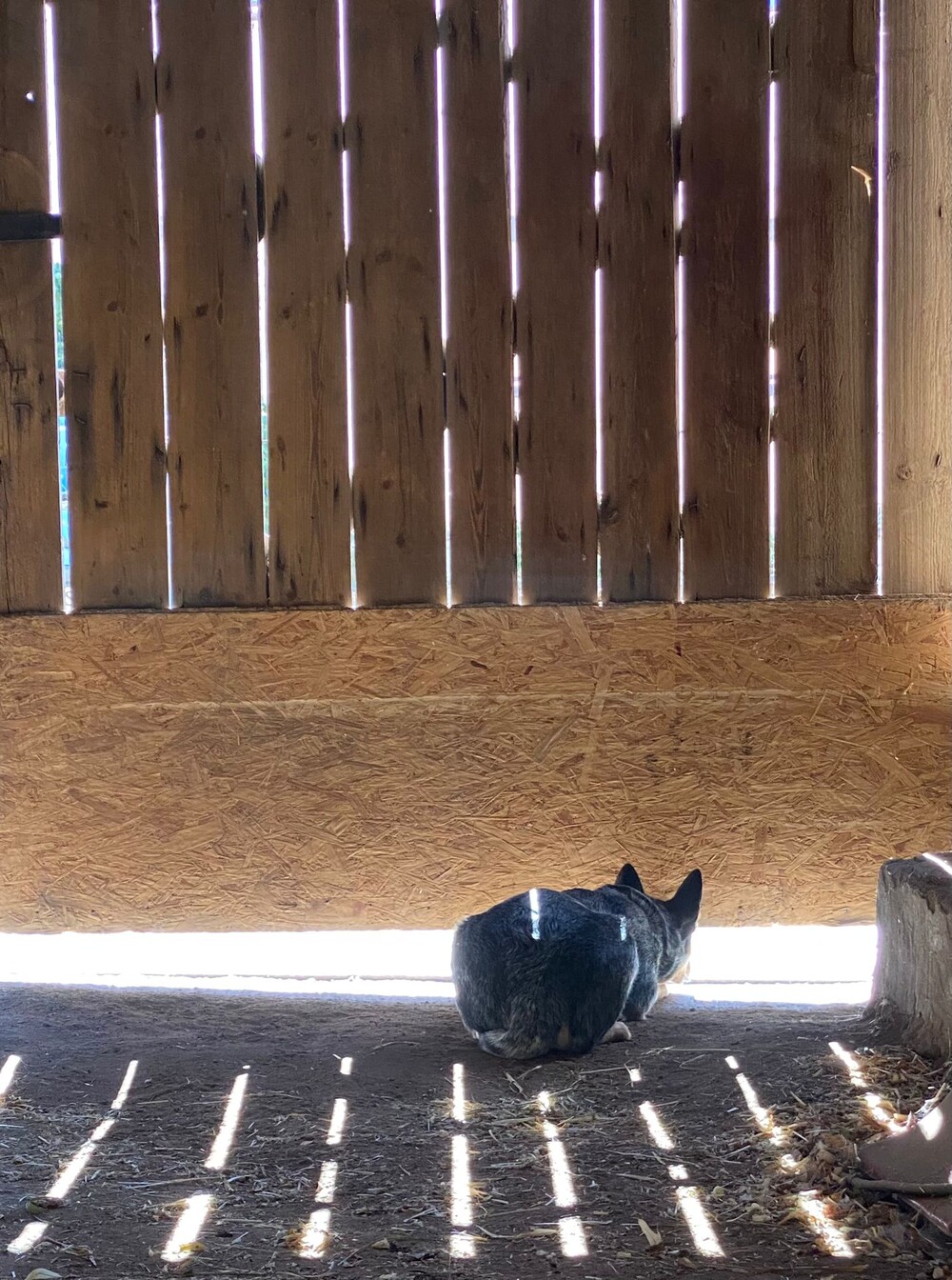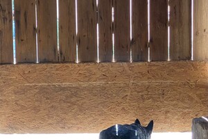 Staat achter de poort, omdat ze nogal gefocust is op de andere honden.