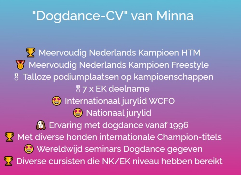 - Aan de slag met een echte ervaren Dogdance-handler en instructeur.