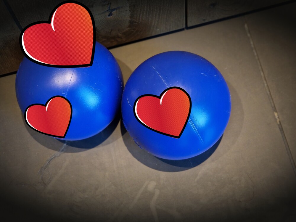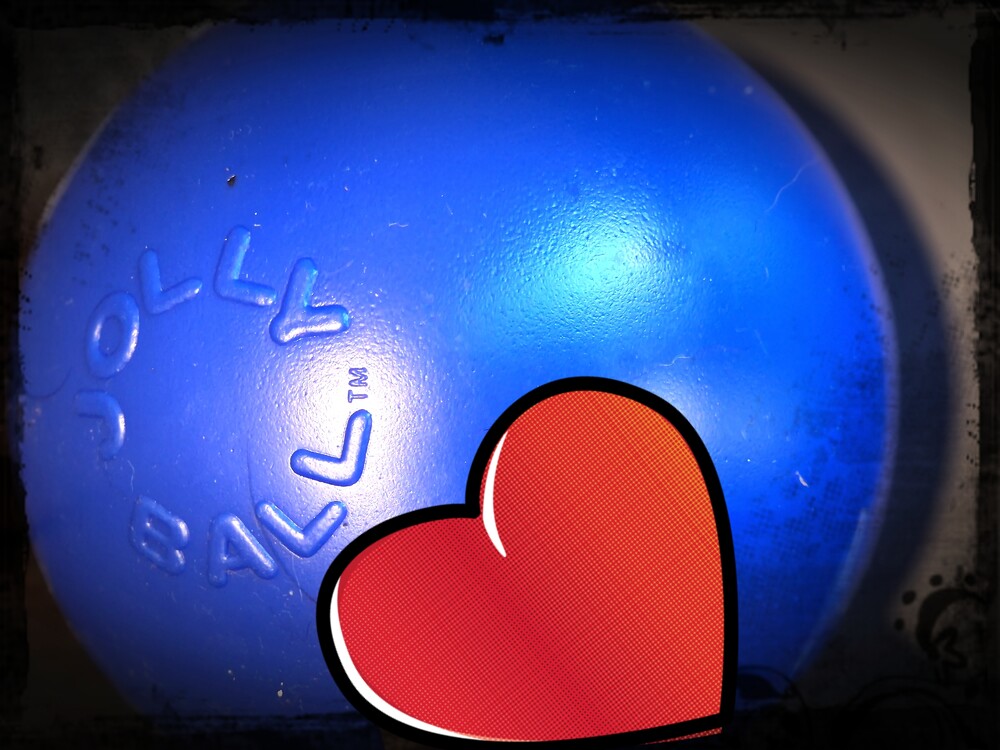 Dus dan maar een saaie bal erbij, twee stuks: merk Jolly ball: een mooie blauwe harde gladde bal, wel zonder geluid en zover: we hopen dat deze ook lang meegaan.