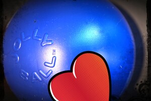 We hadden nog een Wobble Ball erbij gekocht, want die bleef zo lang heel, we hebben deze bal al jaren namelijk. maar helaas: volgens mij heeft Bucky eraan gekauwd, want een bal hebben we weg moeten gooien. De geur was zeker te verleidend - nieuwe bal geur: heerlijk. - de andere Wobble bal is nog heel.