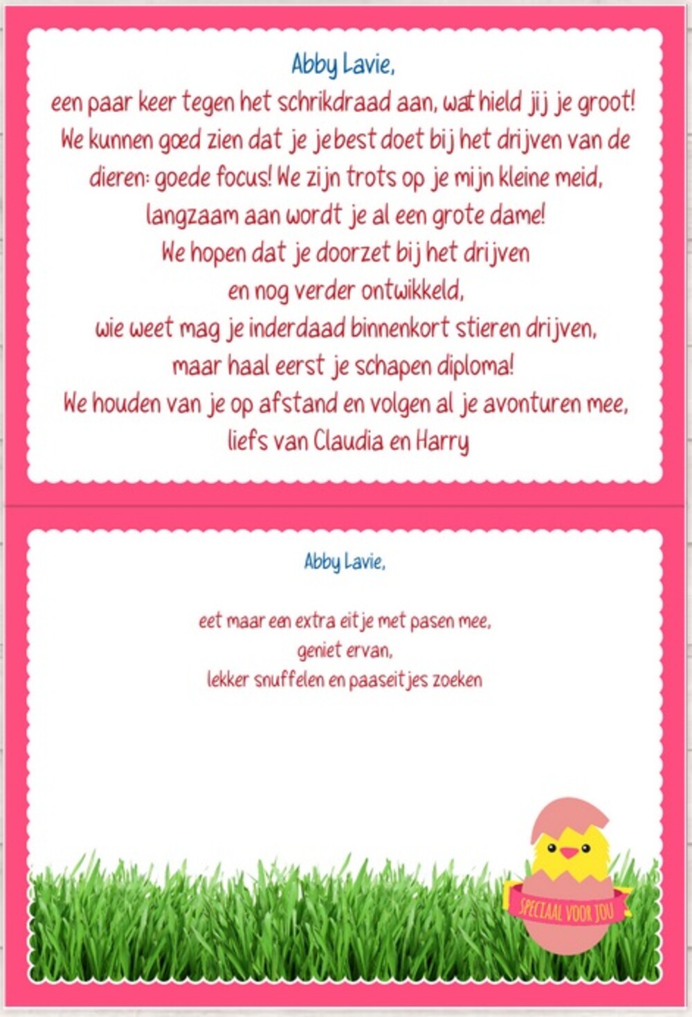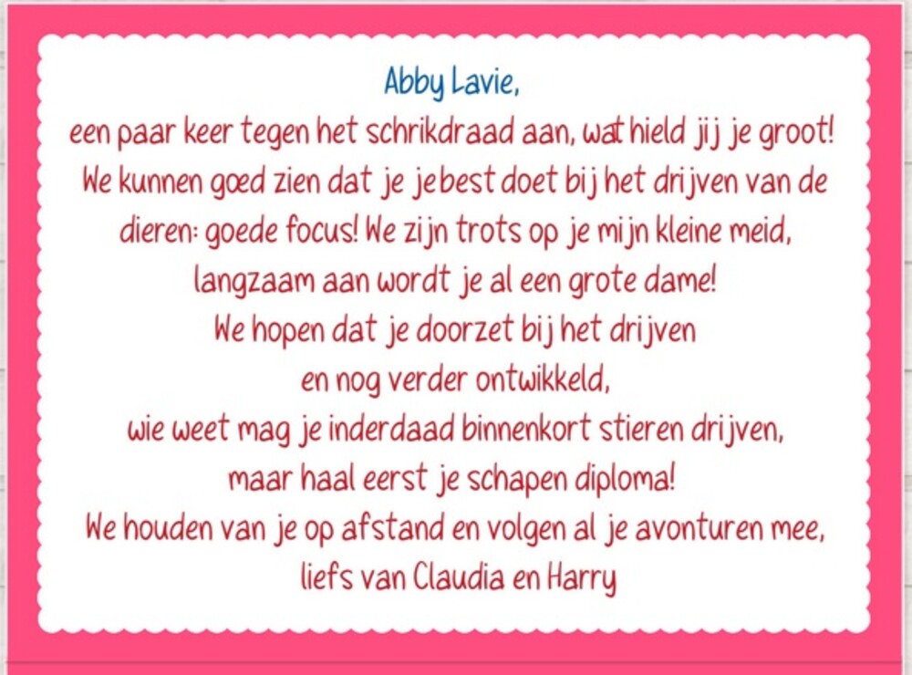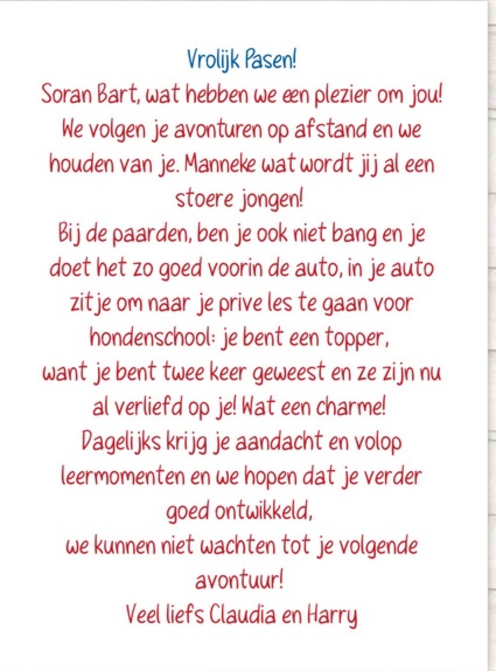 Veel liefs Claudia en Harry
