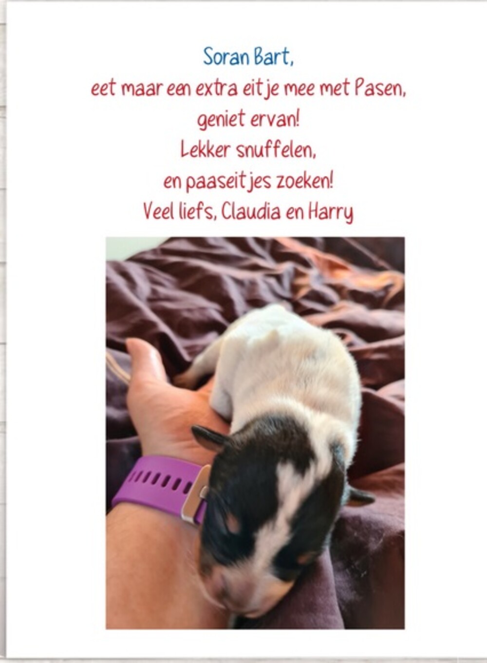 We leven met jullie en de puppy's mee en om goede moed te geven: