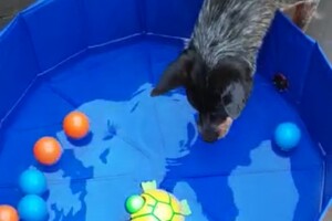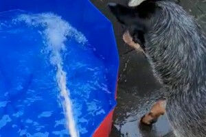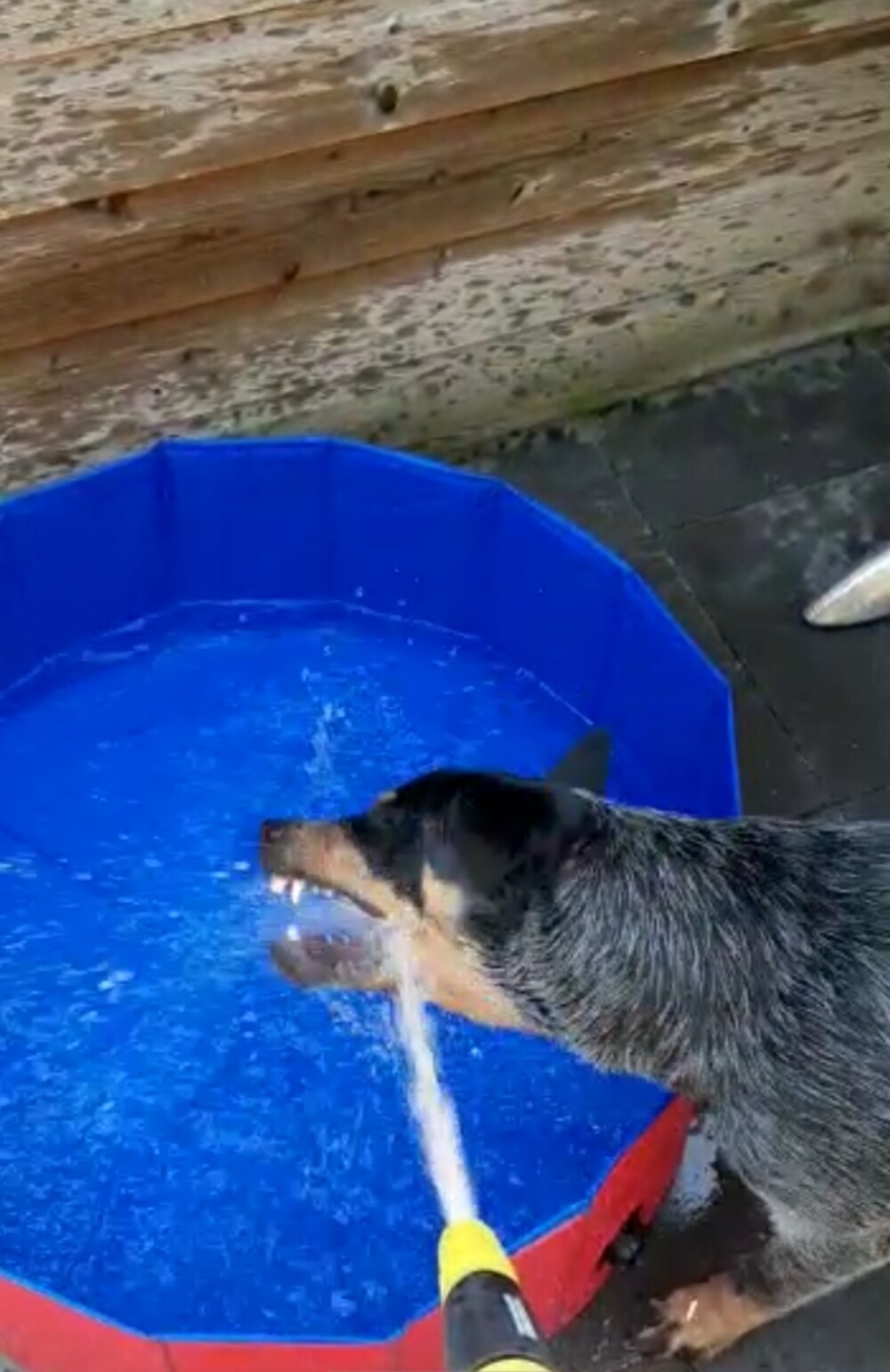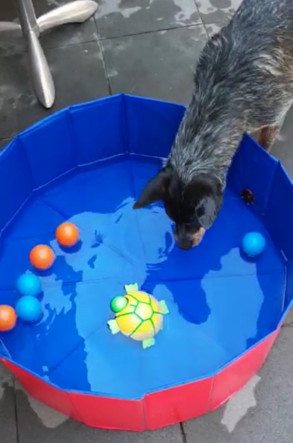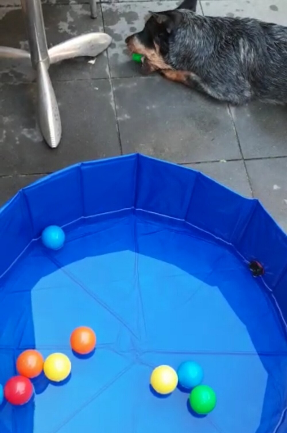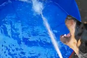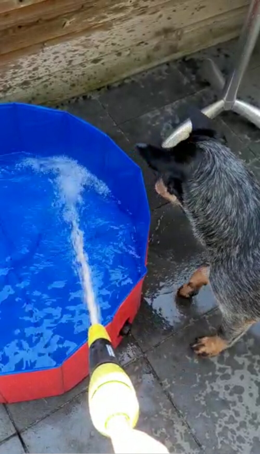 Water pret met Soran Bart thuis. Hij ging net het badje in, door het gras waar hij een gat had gegraven en toen floep zo naar binnen met zijn bagger lijf en een lol dat hij had. We zijn vanmorgen vroeg lekker bij het kraaiennast wezen wandelen, heerlijk vindt hij dat. Achter de eenden aan, maar wel terug komen als ik hem roep! We zijn zo trots op hem!