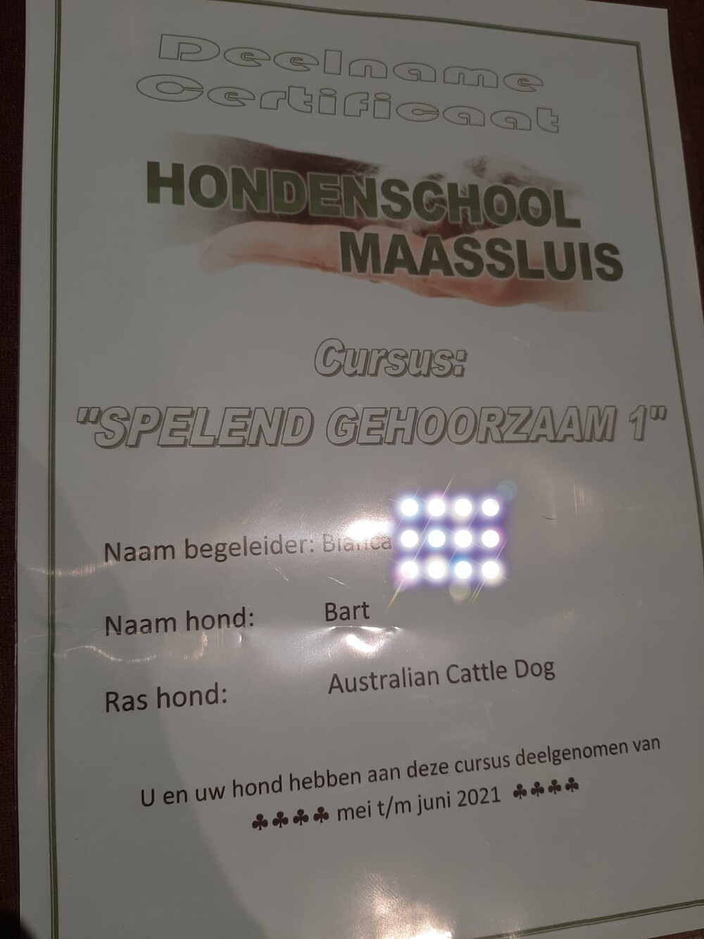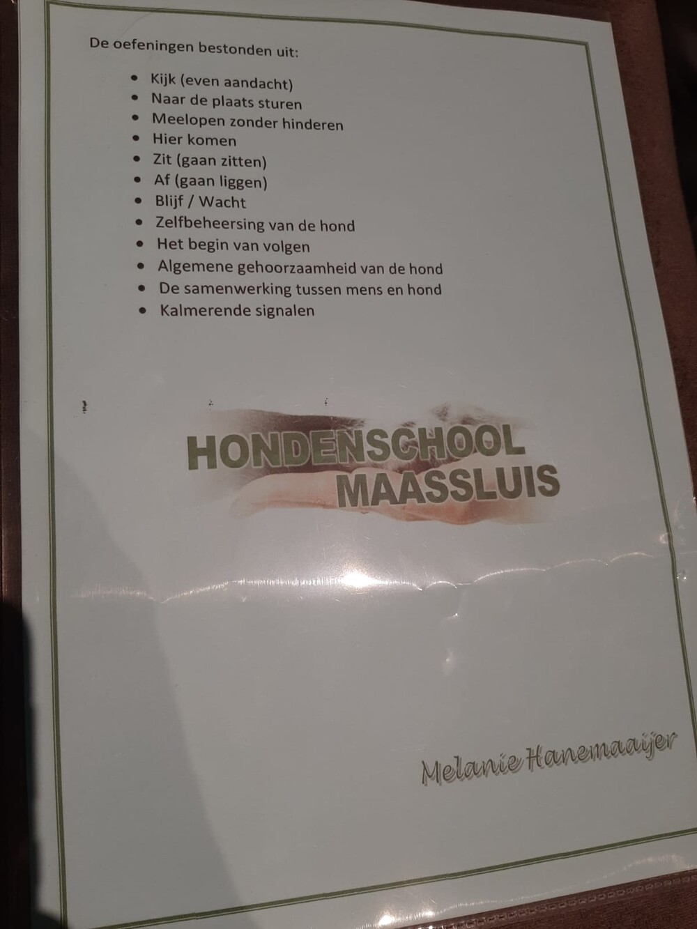 We moeten morgen examen doen: gehoorzaamheid 1, de vorige les was het de clown van de klas, maar komt goed met ons. Het gaat ook erg goed, alleen soms met de curcus niet. We hebben er vertrouwen erin, alleen morgen naar de hondenschool en dan gaan we op vakantie na de zomer stop op gehoorzaamheid 2.