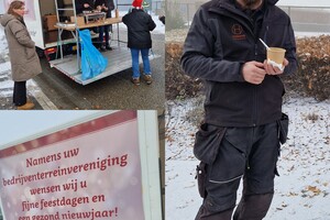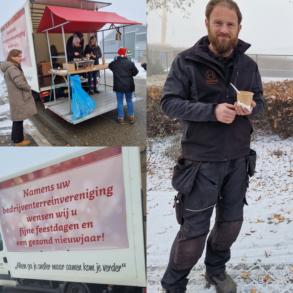 16 december: bedrijven vereniging komen langs met erwtensoep: iedereen heeft ervan gegeten, zowel Harry en Claudia en de werknemers.