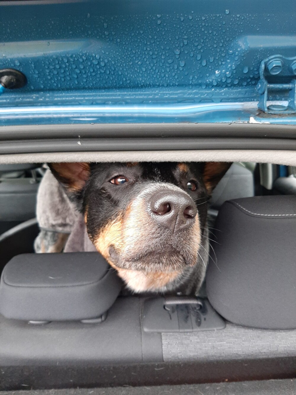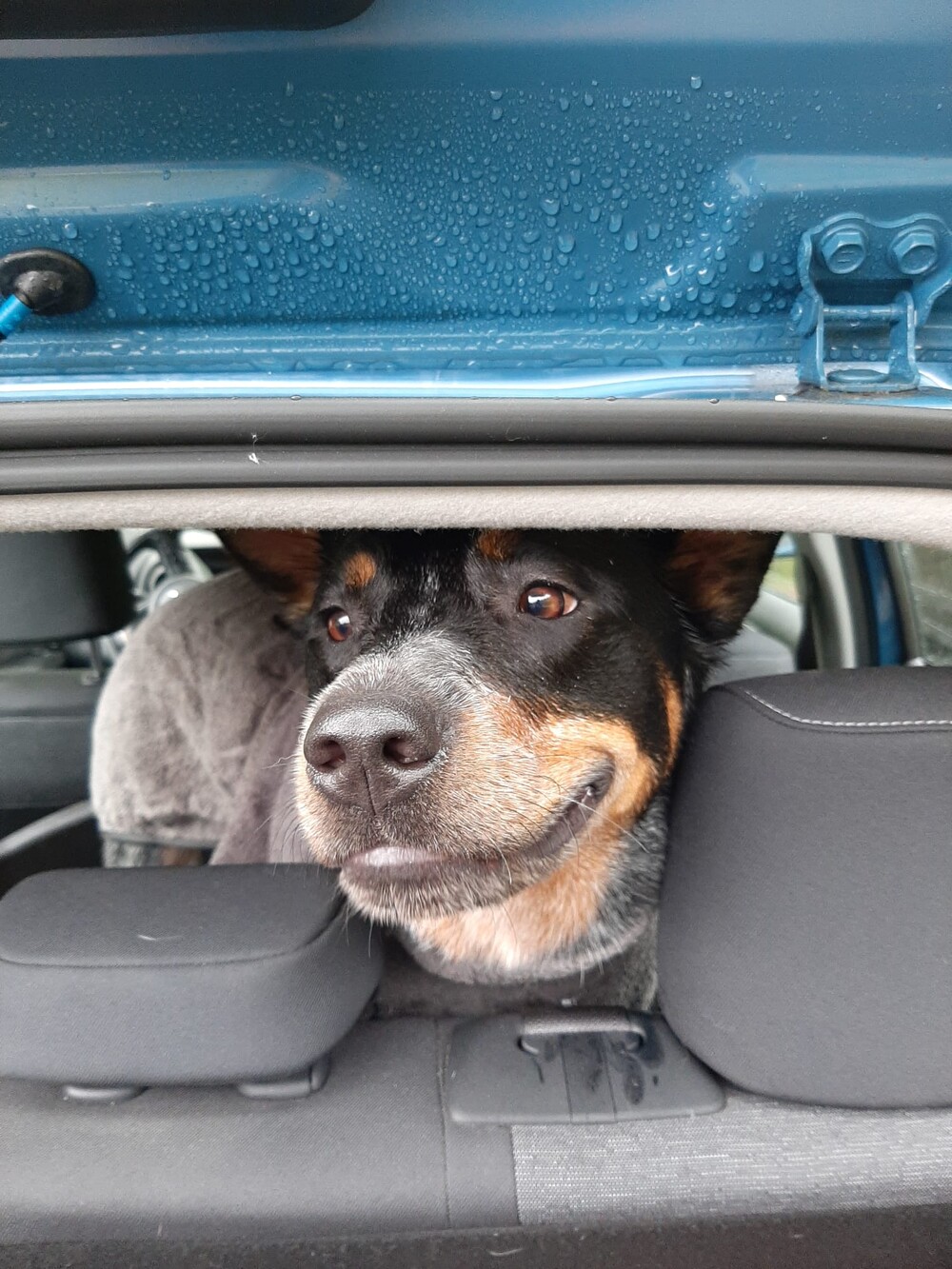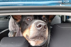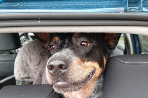 Tegenwoordig zit de hond op de achterbank, hij wordt te groot om voor te zitten.