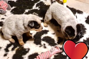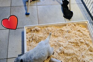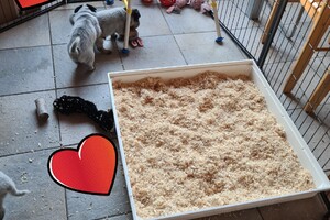 Verder heb ik ook mijn eigen werk, dus het is wel handig met een eigen bedrijf: kunnen we toch goed combineren met elkaar, maar onrust komt later, dan hoop je dat je goed eraan hebt gedaan: goed thuis, aandacht voor de hond etc. en dan hebben we er geen controle er meer erover...dus mag ik de puppy's "loslaten" en dan is het leuk, om foto's etc. te ontvangen, vooral omdat we de puppy's ook goed leren kennen, vooral op jonge leeftijd: je merkt zo vlug de karakter en verschil in gedrag op van elkaar: elke dag leren ze wel iets erbij, dat is een hele ontwikkeling. Mijn man: die gaat over de kosten, want al die aandacht: kost ook geld.
