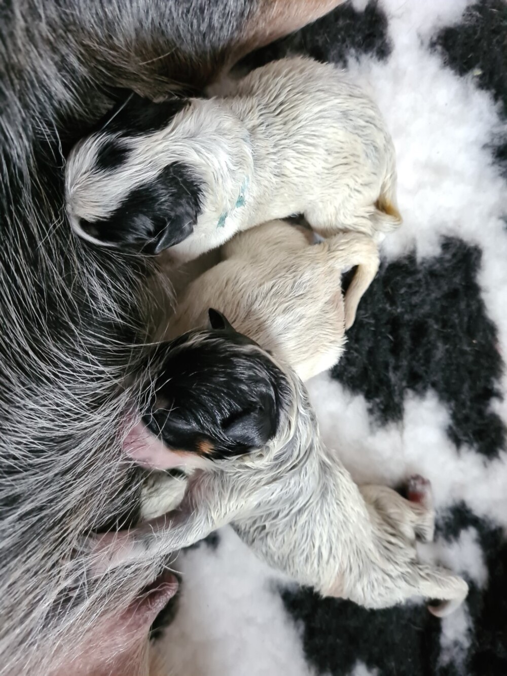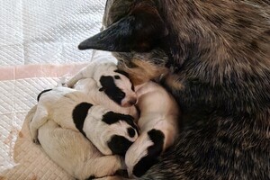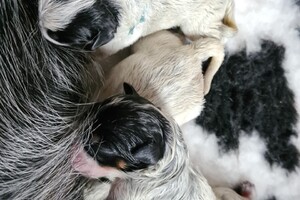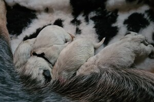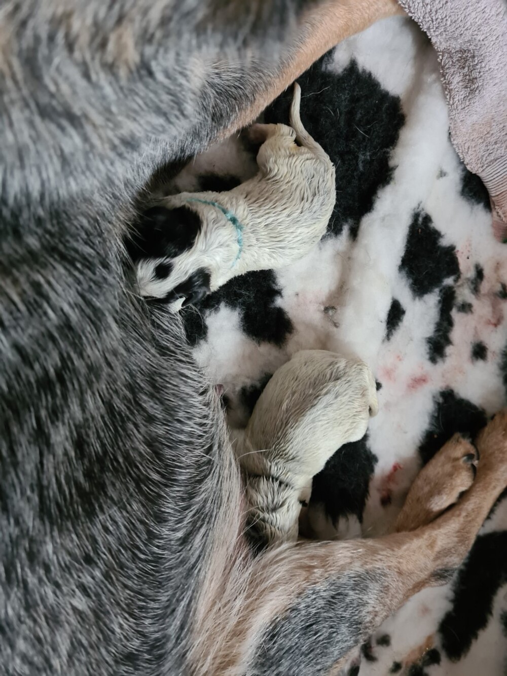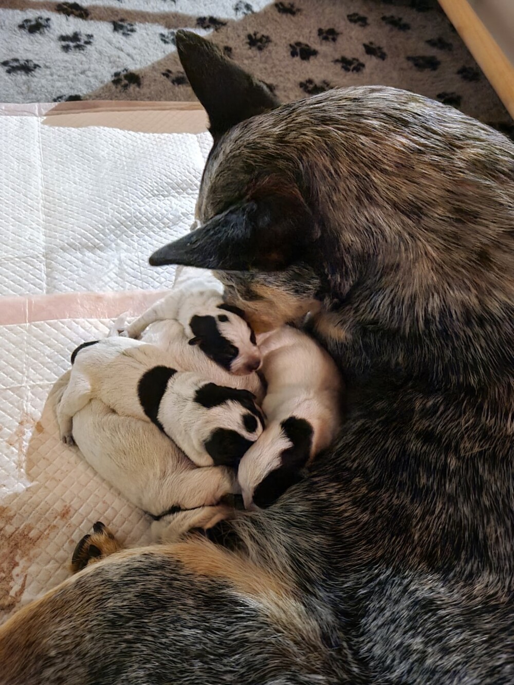 De puppy's zijn geboren, dit was een natuurlijke huiselijke bevalling. Alles verliep dan ook soepel.