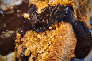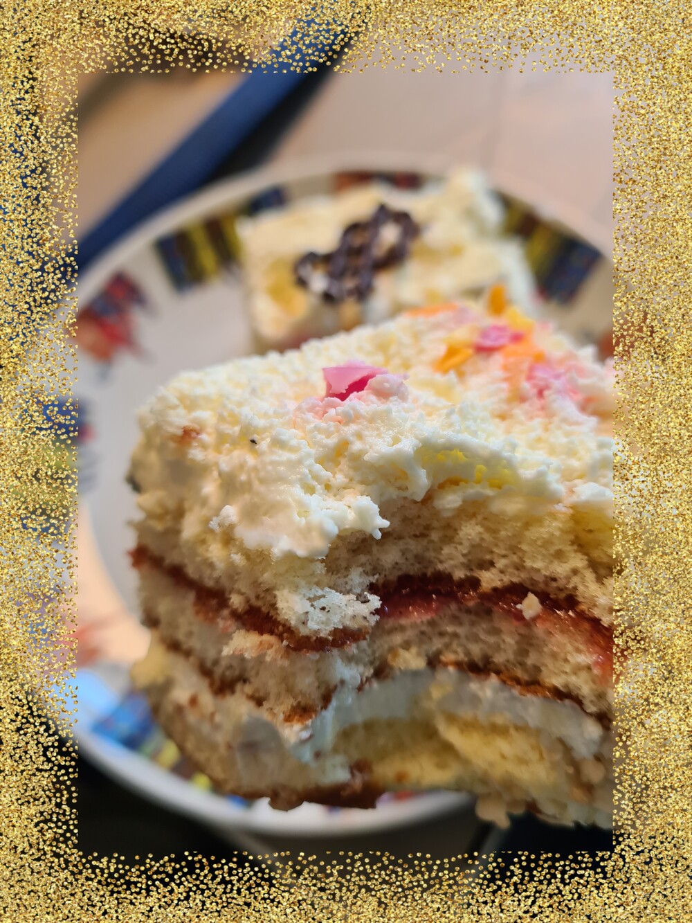 Wij hebben feest: honden zijn 1 jaar oud en de buurvrouw heeft cake gebakken voor ons! Lekker! En zo lief!! Dankjewel!