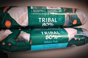 Naast de geperste hondenbrokken heeft Tribal ook een compleet assortiment aan gestoomde voedingen. Deze complete voedingen zijn graanvrij en deze variant is met 80% verse witte vis, kikkererwten en wortelen. Deze gestoomde voeding kun je afwisselen met brokken of als beloning tijdens de hondentraining. Maar ook erg handig tijdens vakanties of wanneer je vergeten bent rauwe vleesvoeding uit de diepvries te halen