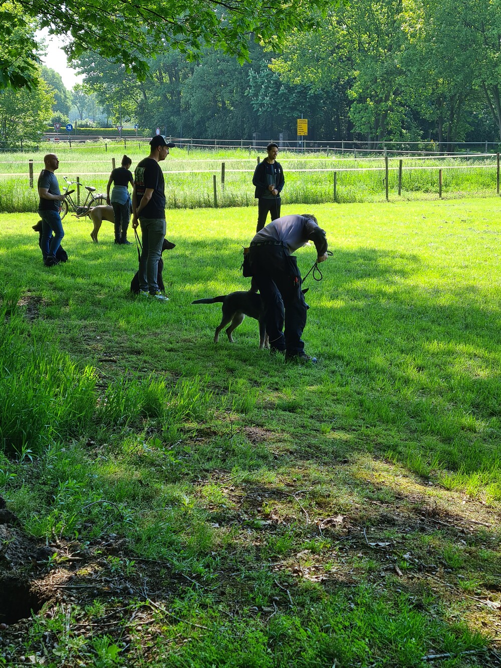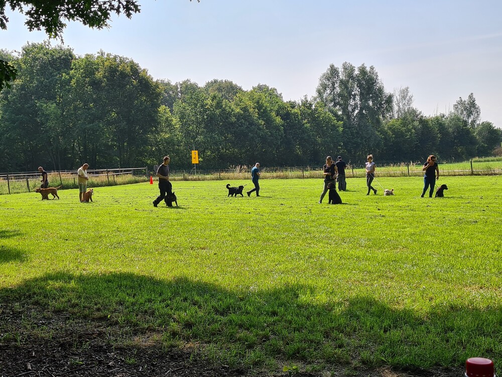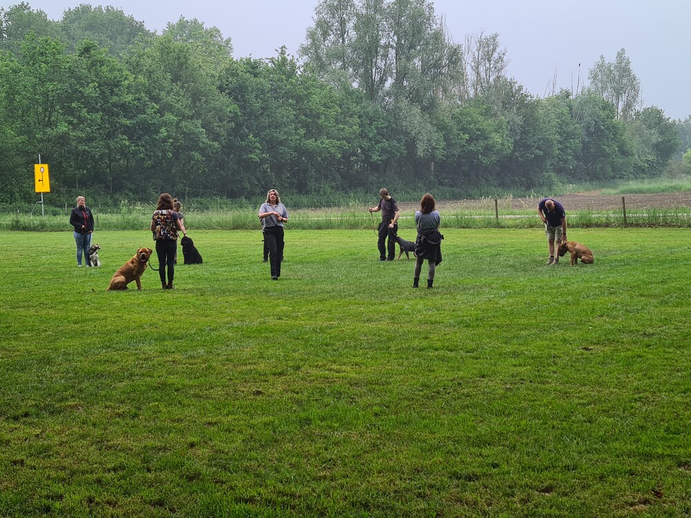 Zover wordt ze door de instructrice gecorrigeerd met een riem, maar dit heeft weinig effect, dus we kunnen blijven corrigeren dat ze minder reageerd op de andere honden.