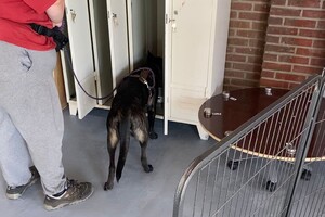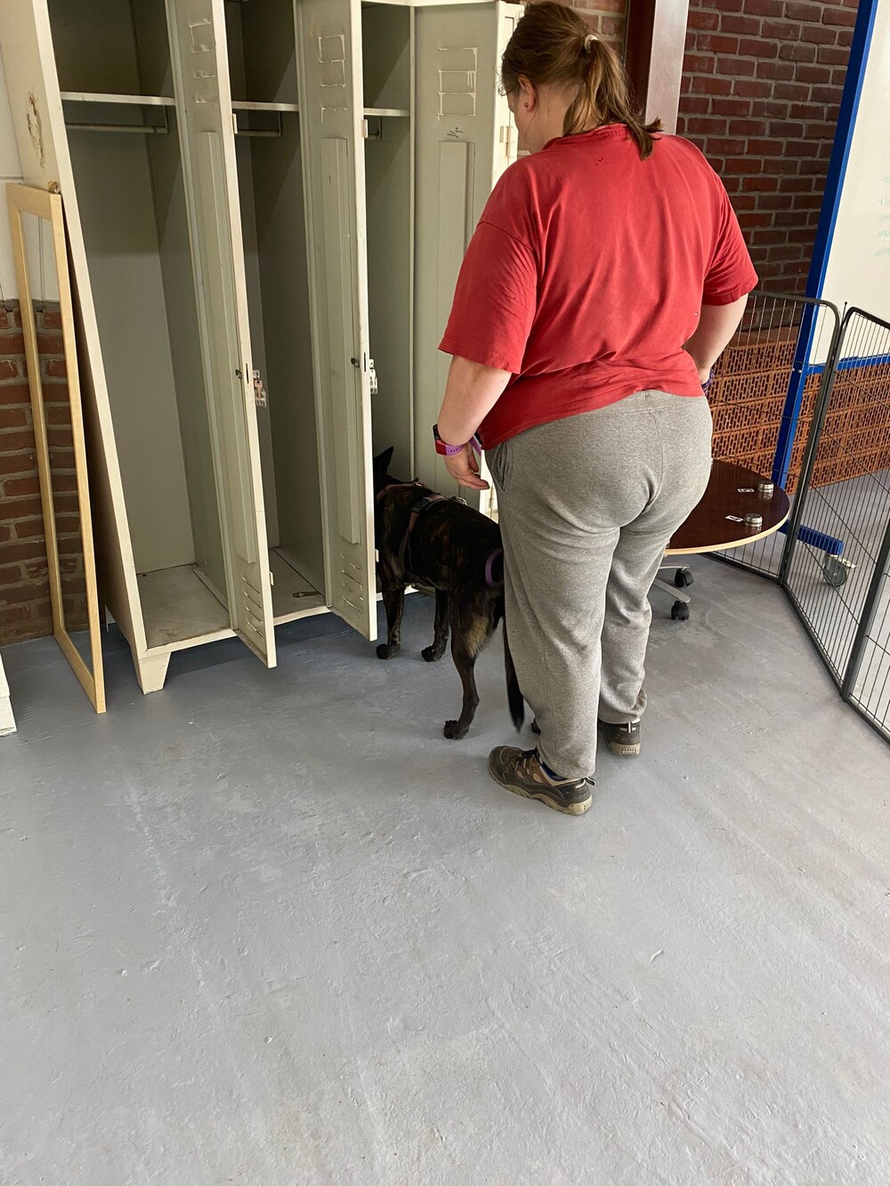 Claudia komt vanuit haar werk, effe eten en weer door, naar hondenles
