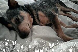 Uit logeren bij mijn ouders en ik mag lekker slapen in het grote bed, samen met mijn baasje