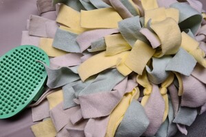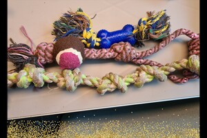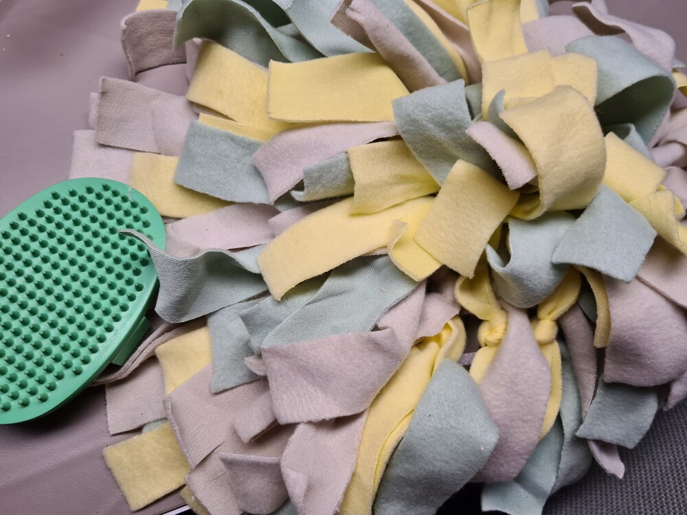 We hebben nog van alles in huis betreft puppy speelgoed, zo ook een snuffelmatje voor puppy's om snoepjes in te strooien zodat de puppy dat kan zoeken.