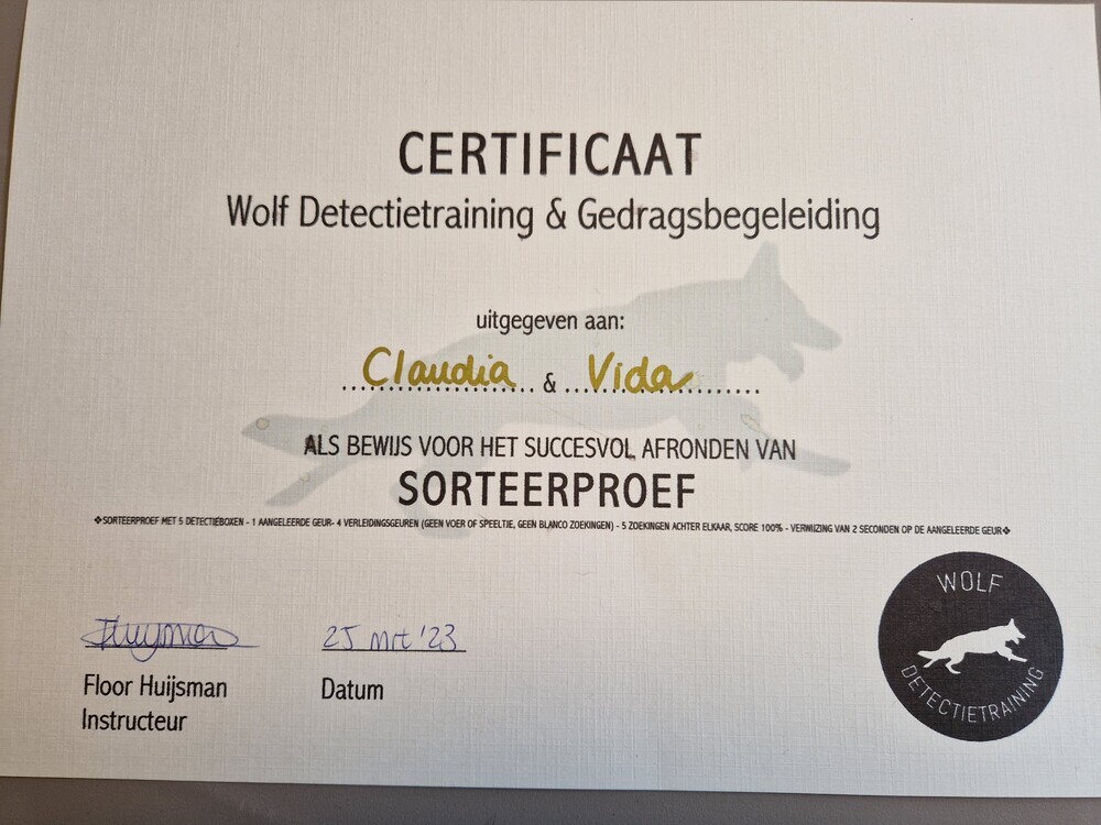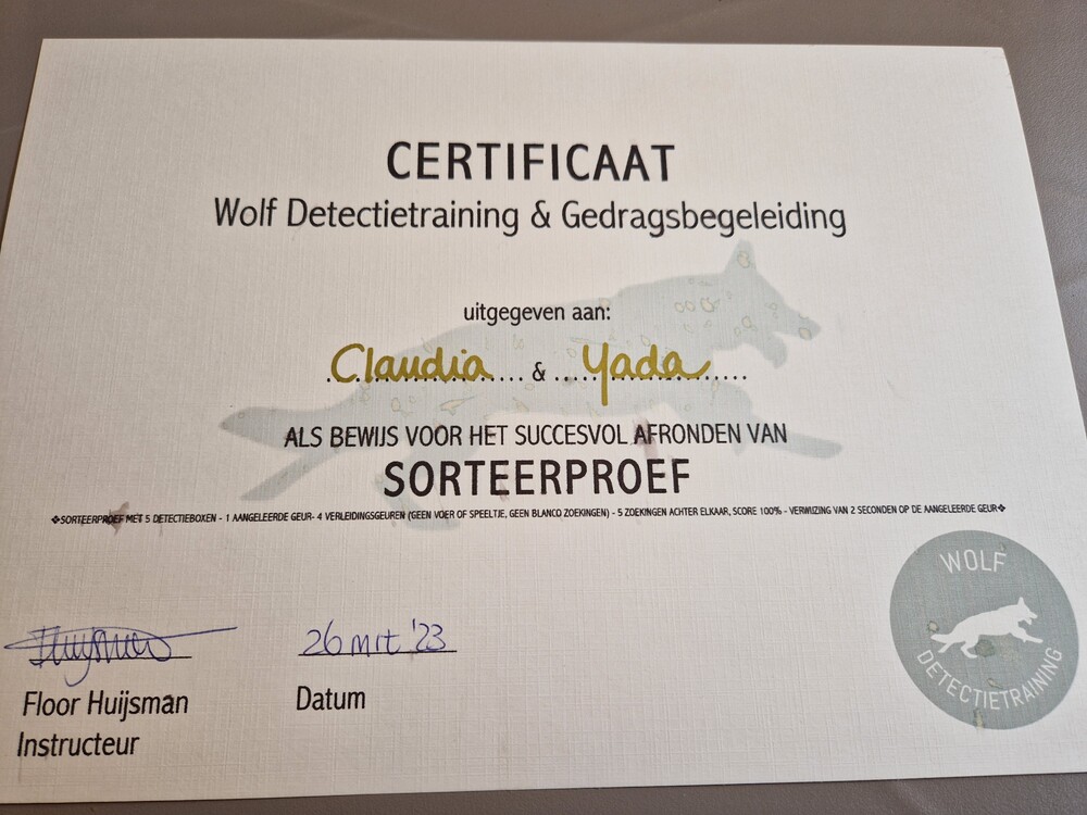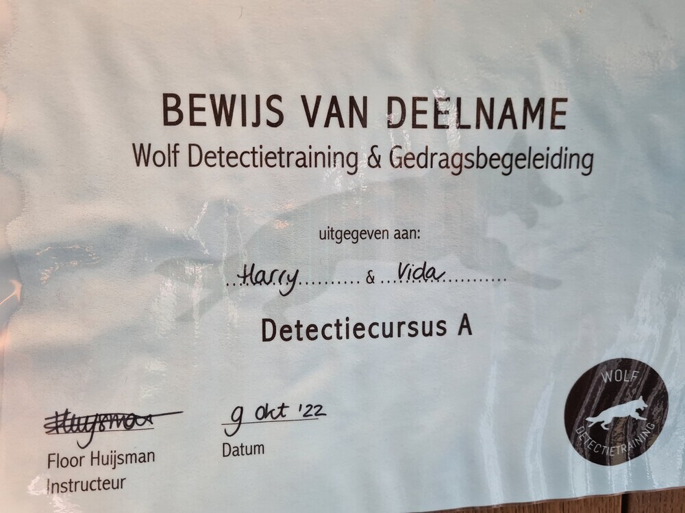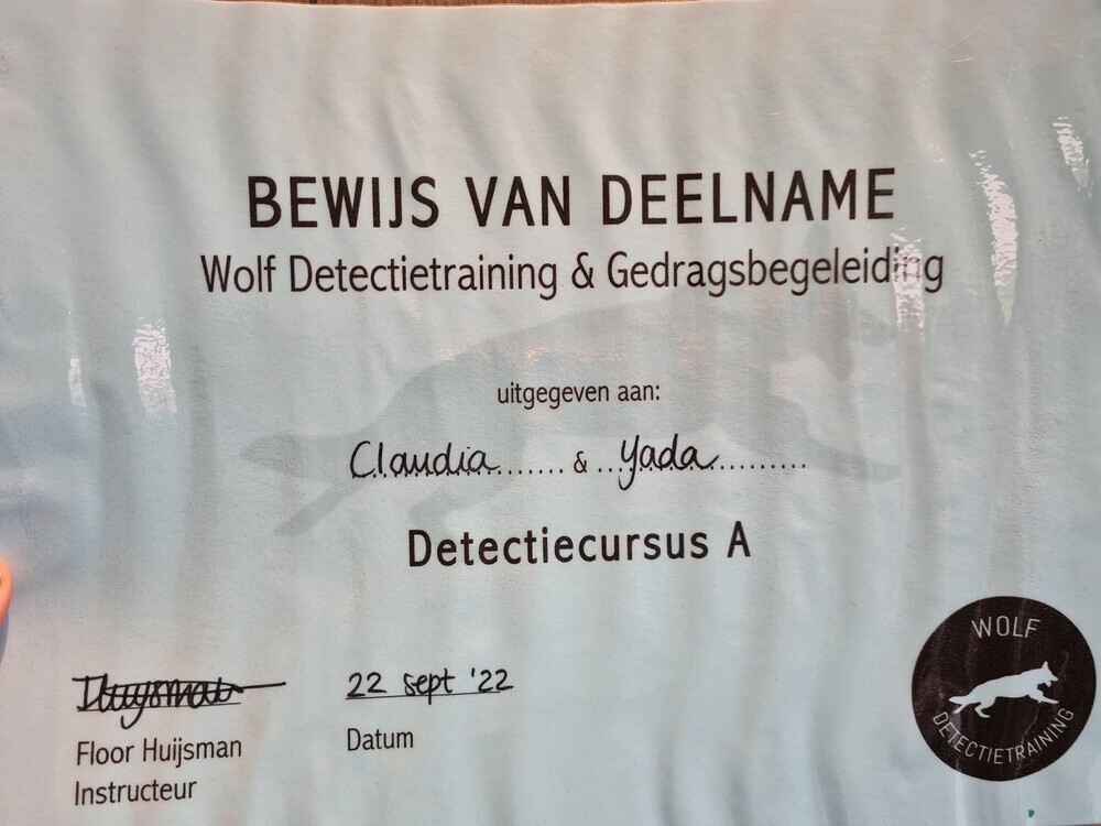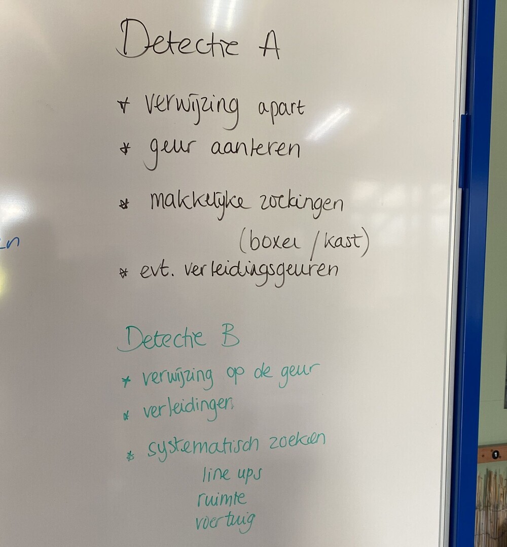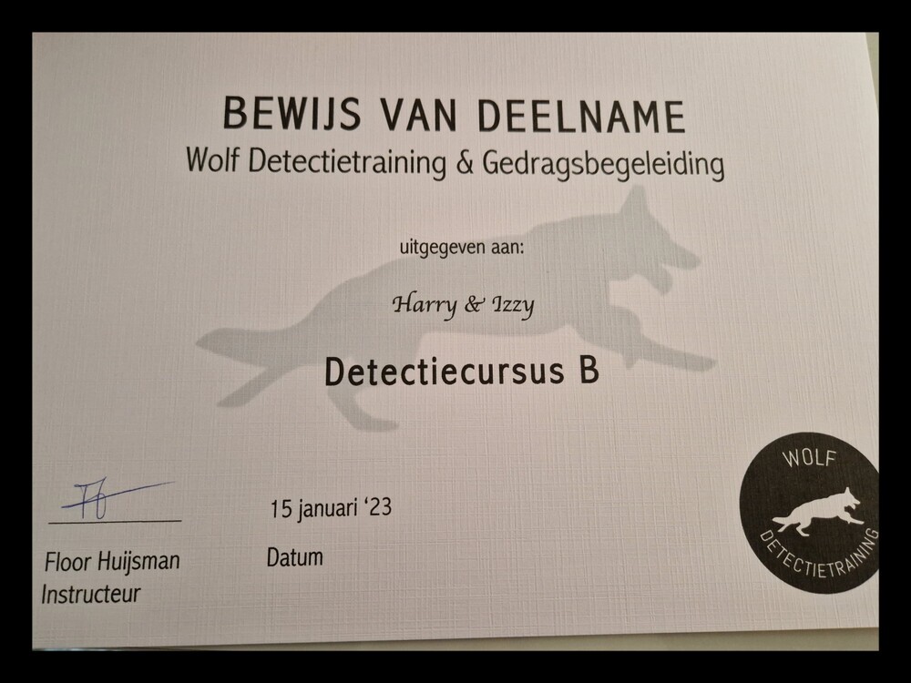 Sinds 15 november 2022 hebben we met regelmaat twee keer in de week daar les gevolgd: ene keer gehoorzaamheid en de andere week detectie