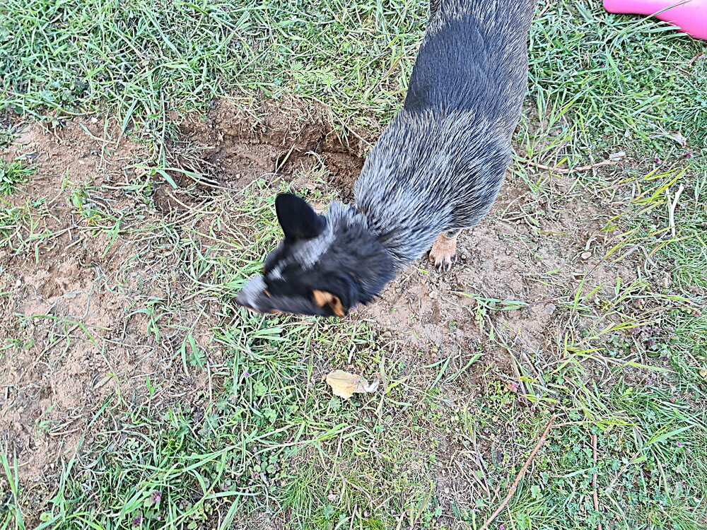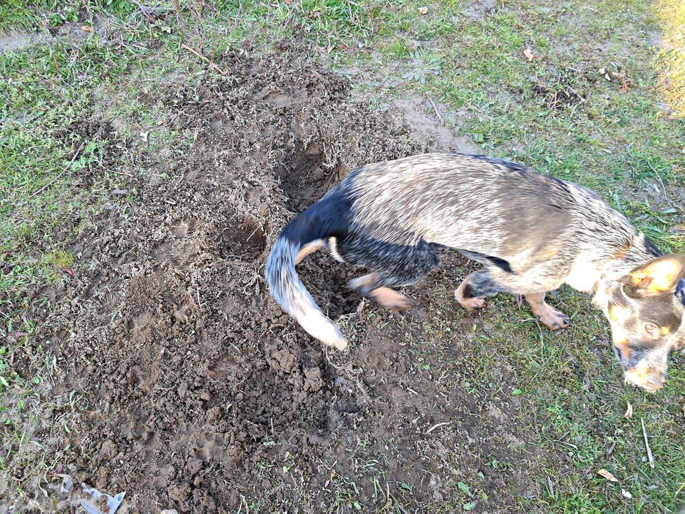 De opvang is gesloten, dus we hebben een modderpoel in de tuin gemaakt: gat door de honden was al gegraven, mag bij de opvang ook, dus waarom zou dat hier niet mogen?! Claudia hielp mee door het gat met water te vullen en we hebben een bad voor de honden met water gevuld, niet de zandbak: die was nog niet binnen gekomen maar een ander badje. Verder hebben ze hun vlees met groente op en een stuk fruit als extra: een stukje banaan en een aardbei.