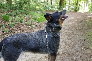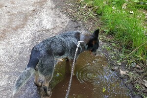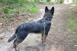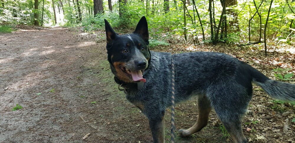 Daarna met Izzy gewandeld, spontane wandeling, normaal gebruiken we een tuigje en een lange lijn