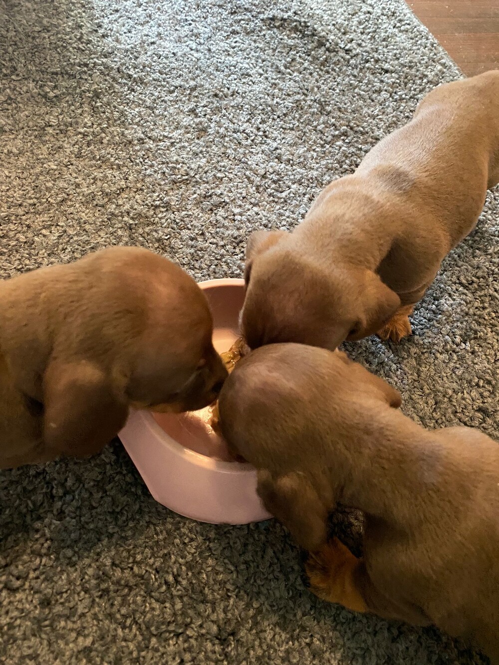 4 weken oud: betekend dat ze vast voedsel mogen proberen.