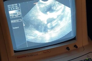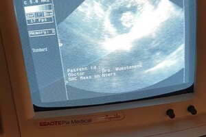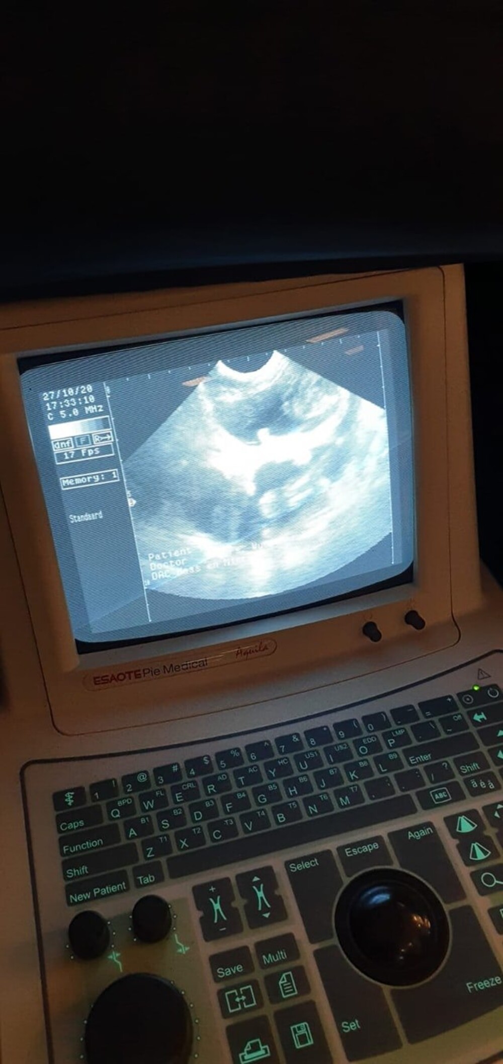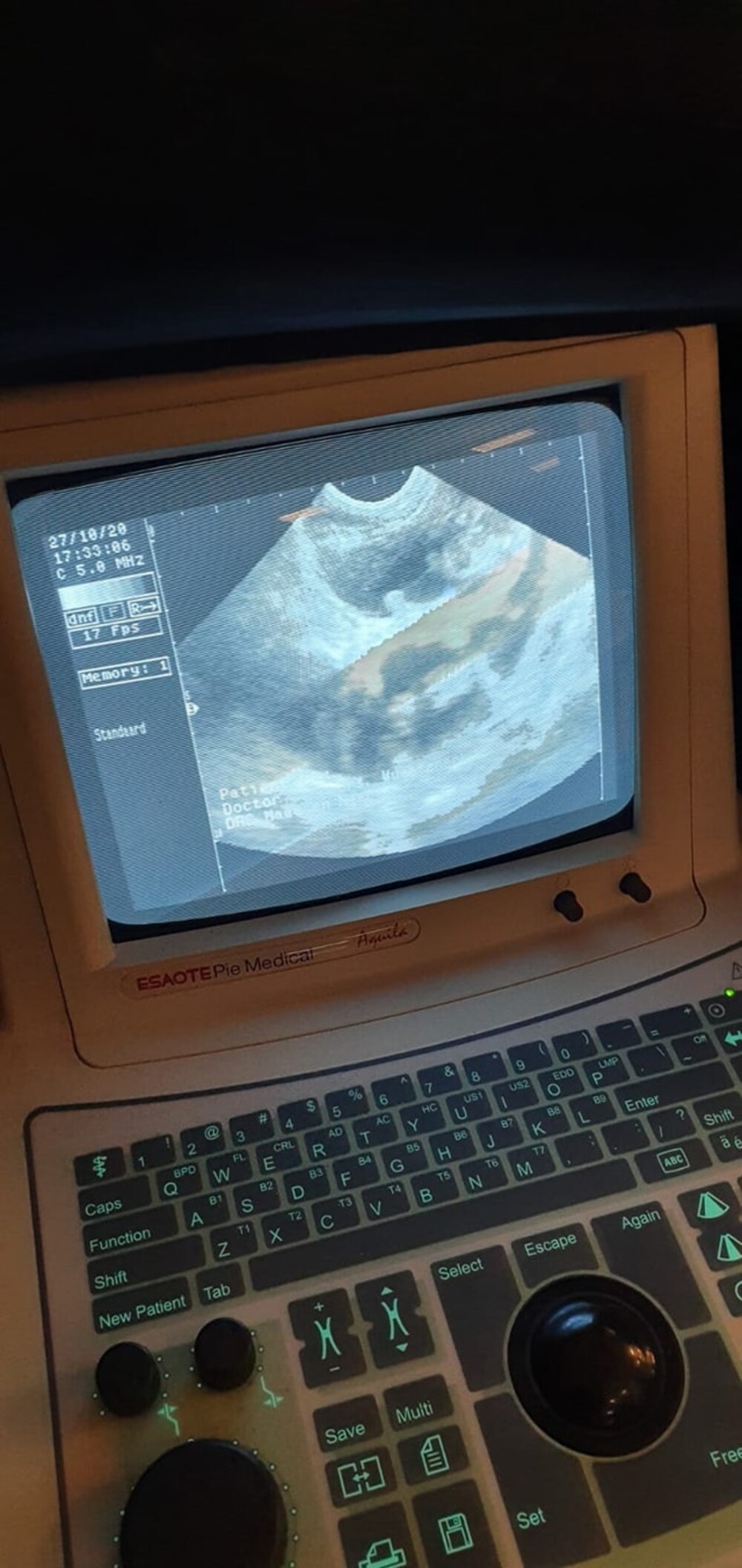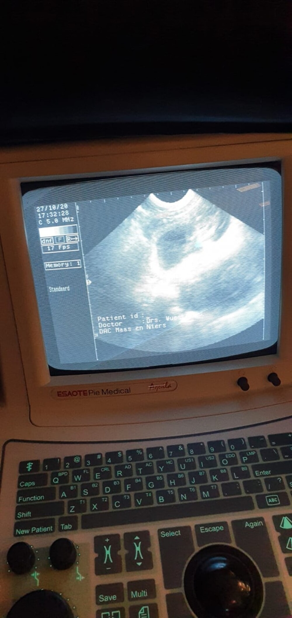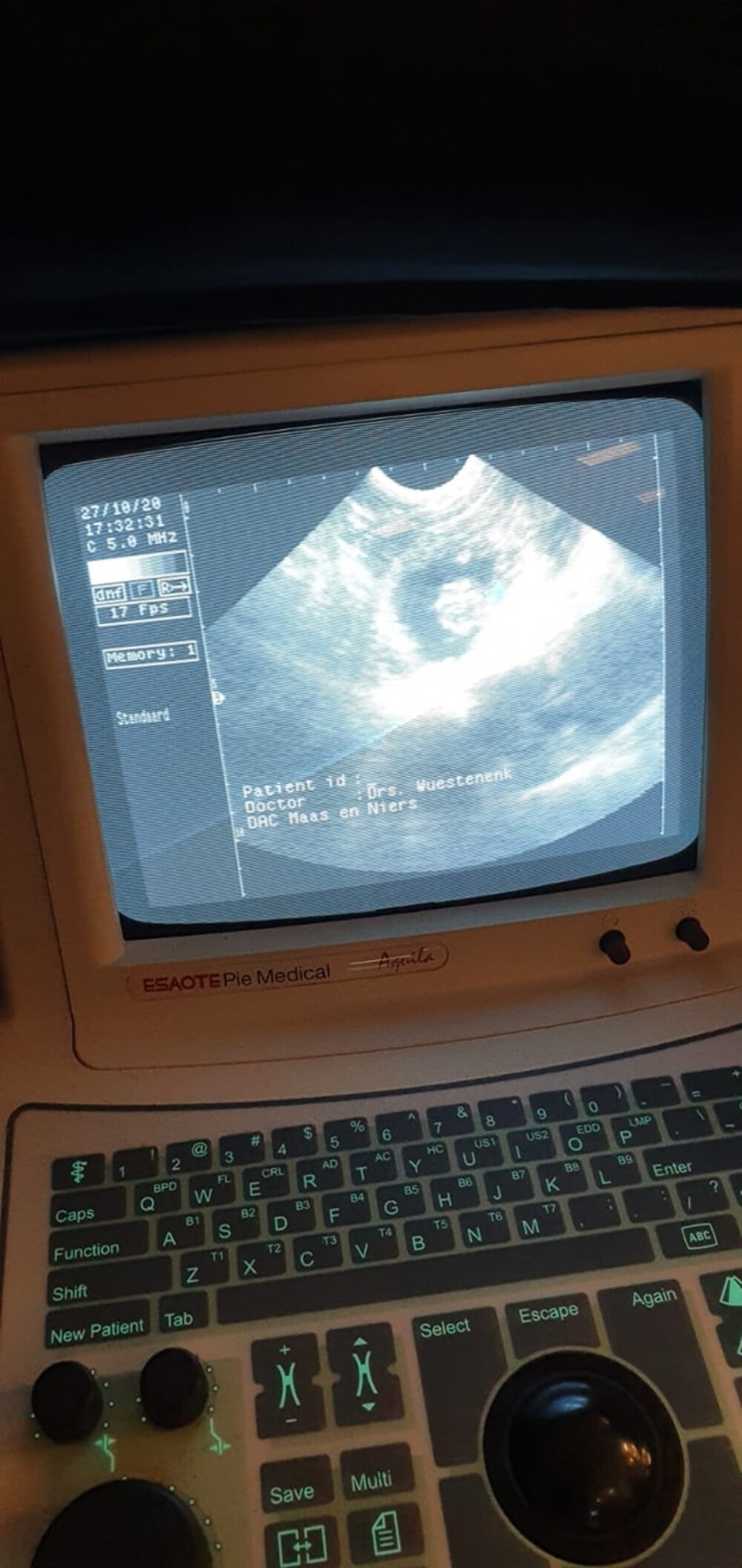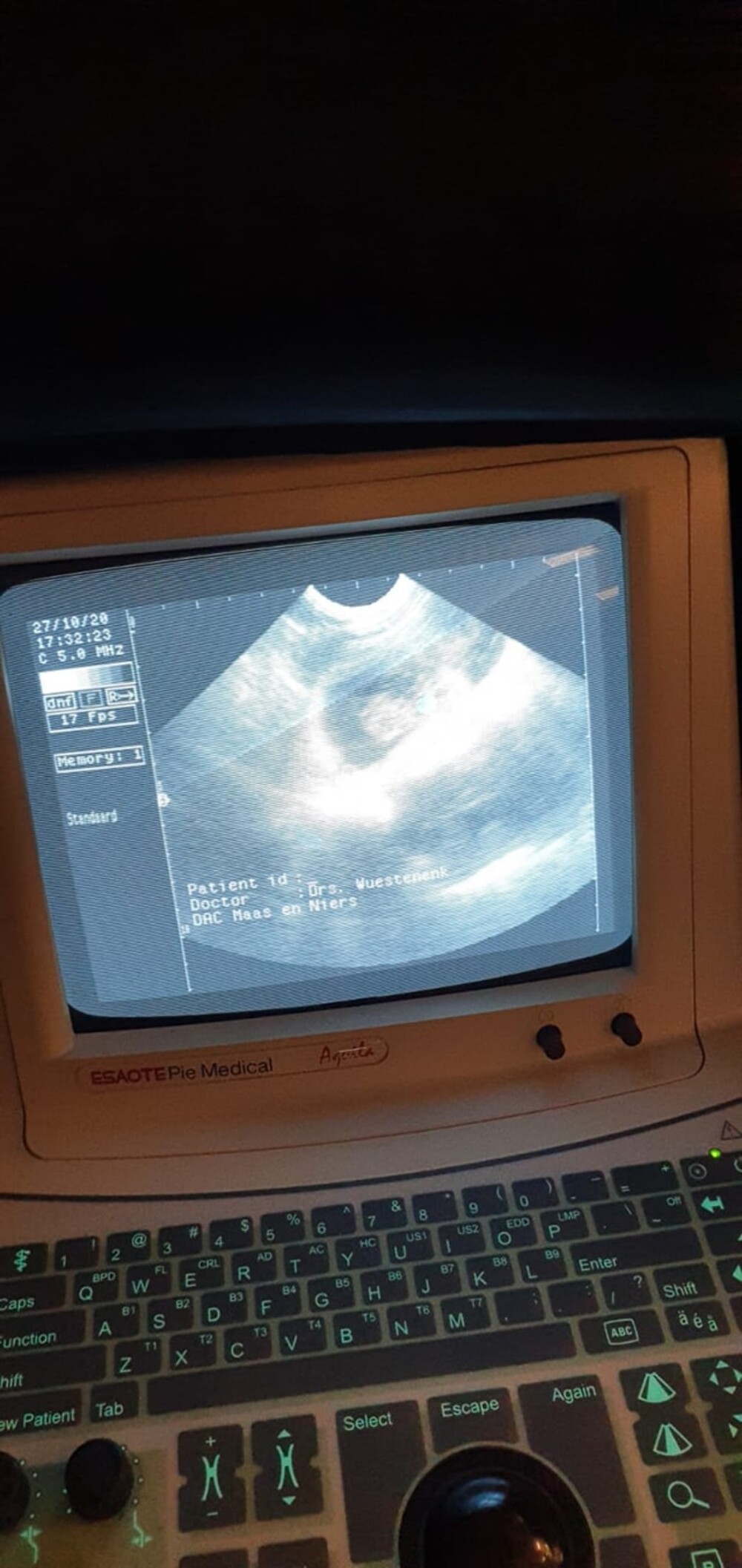 de dierenarts mocht Dakota eerst scheren, dit had ze nog niet eerder meegemaakt, maar ze vondt het niet zo erg, daarna heeft de dierenarts de scan gemaakt: