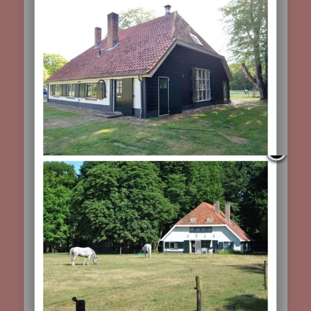We hebben een grote boerderij gehuurd, midden in het bos met weide voor de paarden en stallen.